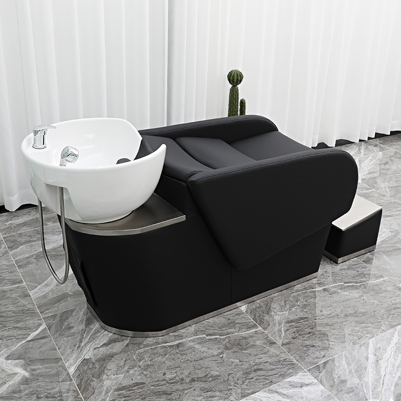 Hair salon special semi-reclining flush bed Polygine shop ceramic deep basin instant water heater integrated beauty hair washing head bed
