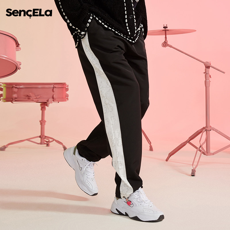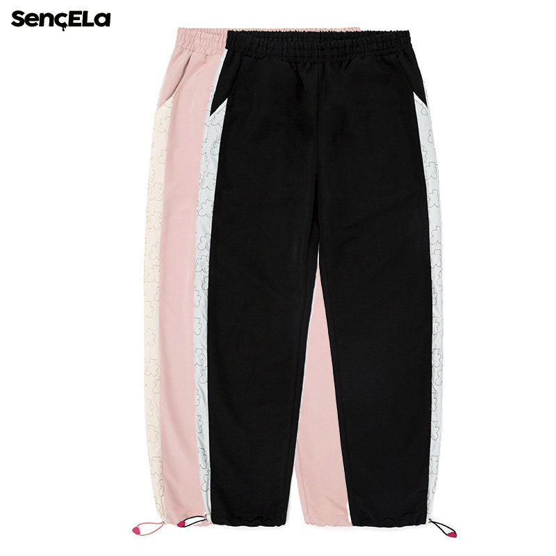 SENCE LA SMALL FLOWER BEAR STRING SIGN SIDE SPLICING SPORTS PANTS SPRING AUTUMN TIDE CARD LOVING DRAW ROPE BUNCH FOOT CASUAL LONG PANTS