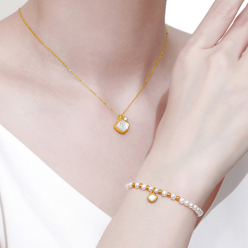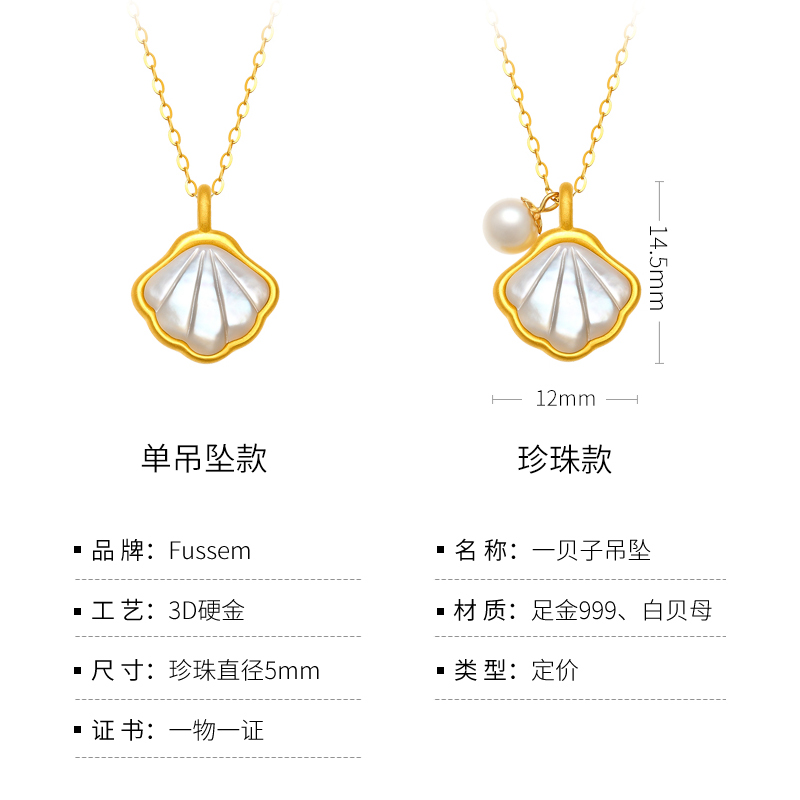 Lifetime necklace female pure gold 24k shell gold pendant 999 pure gold a shell fine clavicle set chain new