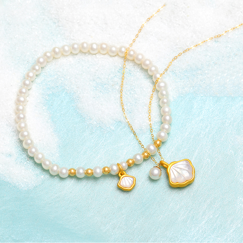 A lifetime of pure gold pendant (with 18K gold O-shaped chain) A lifetime of pure gold pendant Pearl (with 18K gold O-shaped chain)