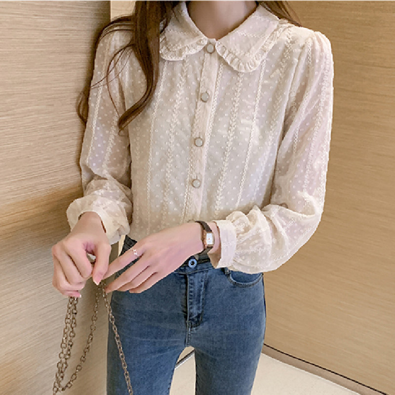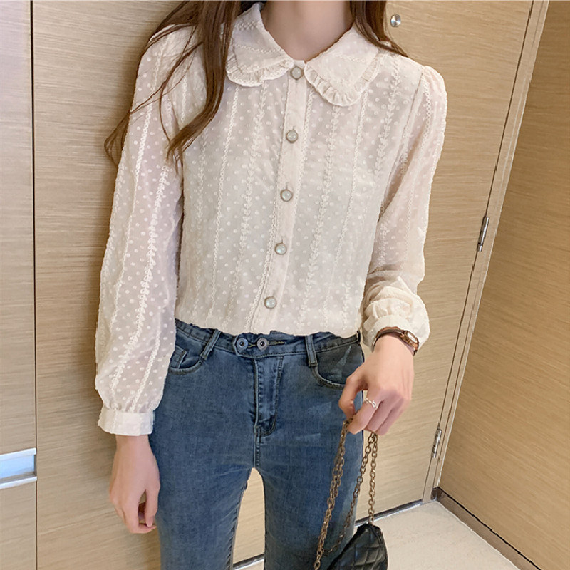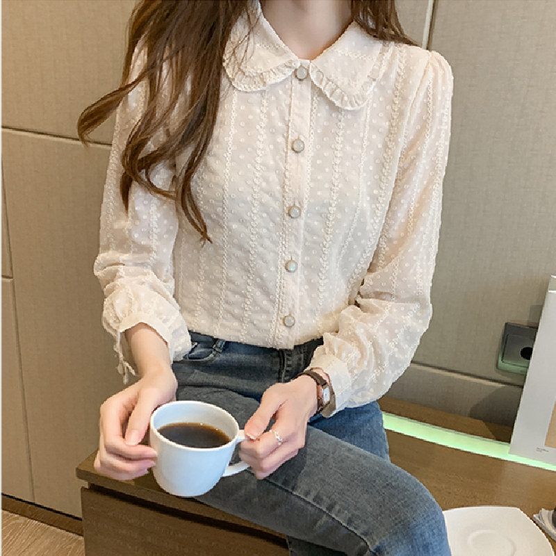Doll collar shirt women's long-sleeved 2022 spring and autumn new retro Hong Kong style Western style chiffon design niche top