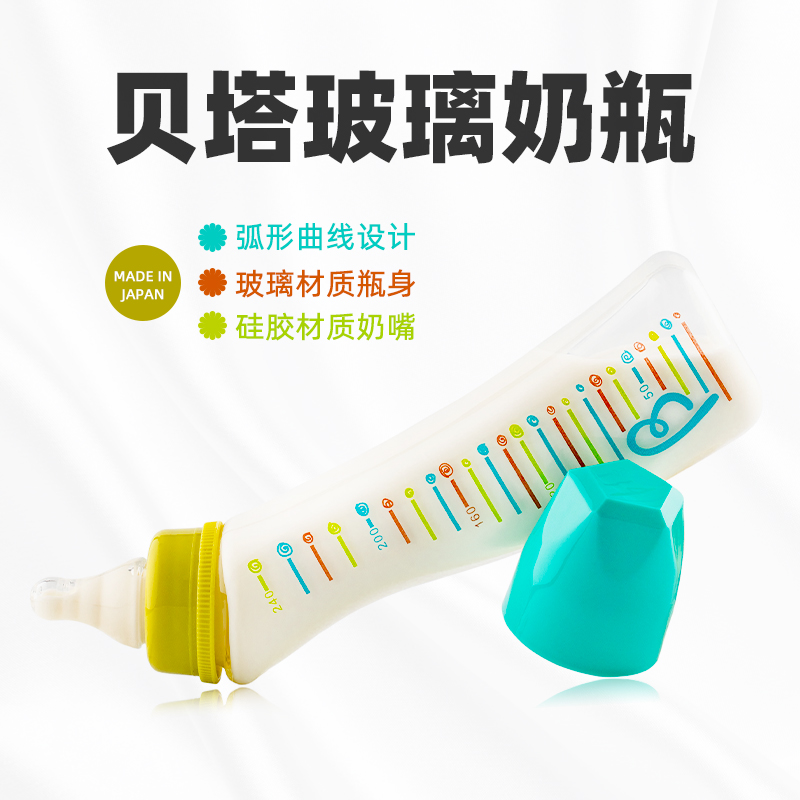 (Japan Made) Betta Glass Bottle 240ml Newborn Baby Baby Standard Aperture Arched Slim Milk Bottle