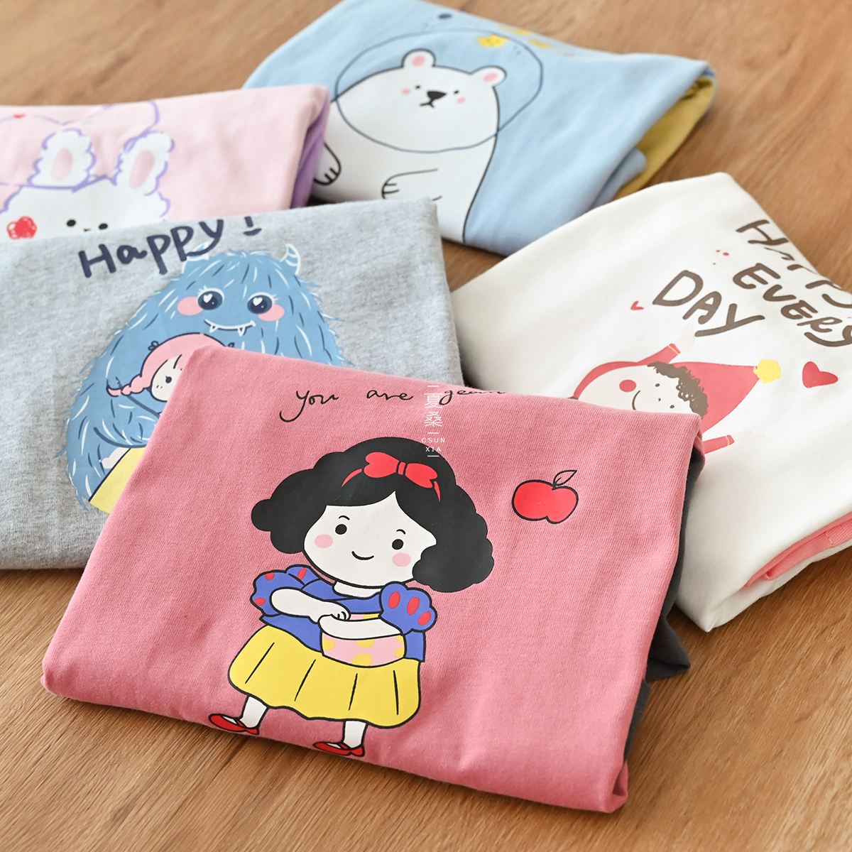 Gray red ~ T-shirt pink white ~ T-shirt pink purple ~ T-shirt Blue yellow~T-shirt Gray blue~T-shirt