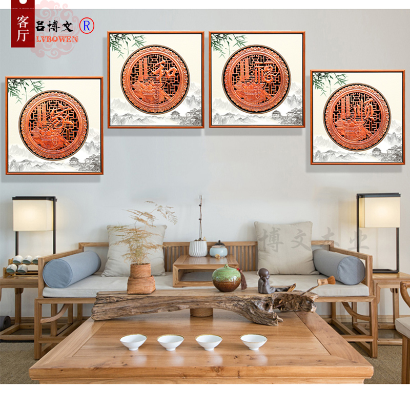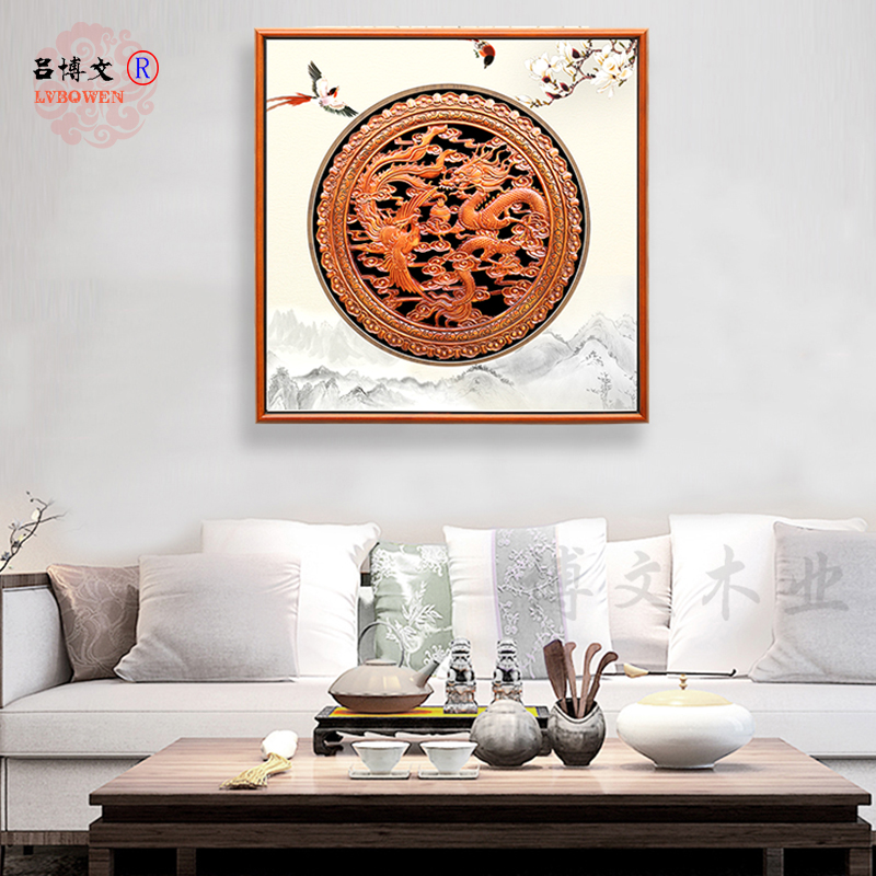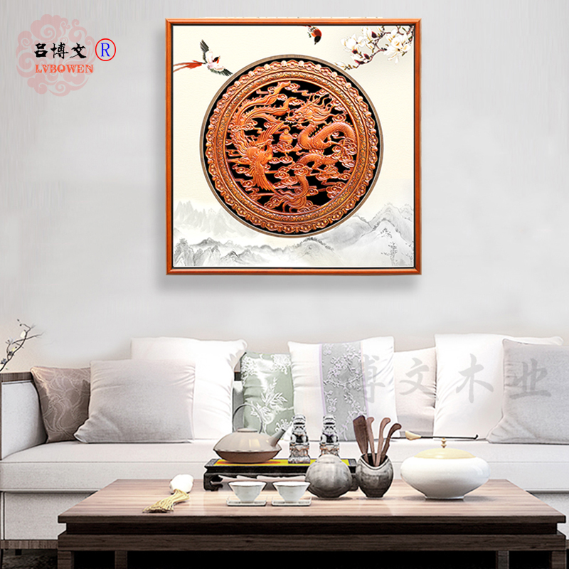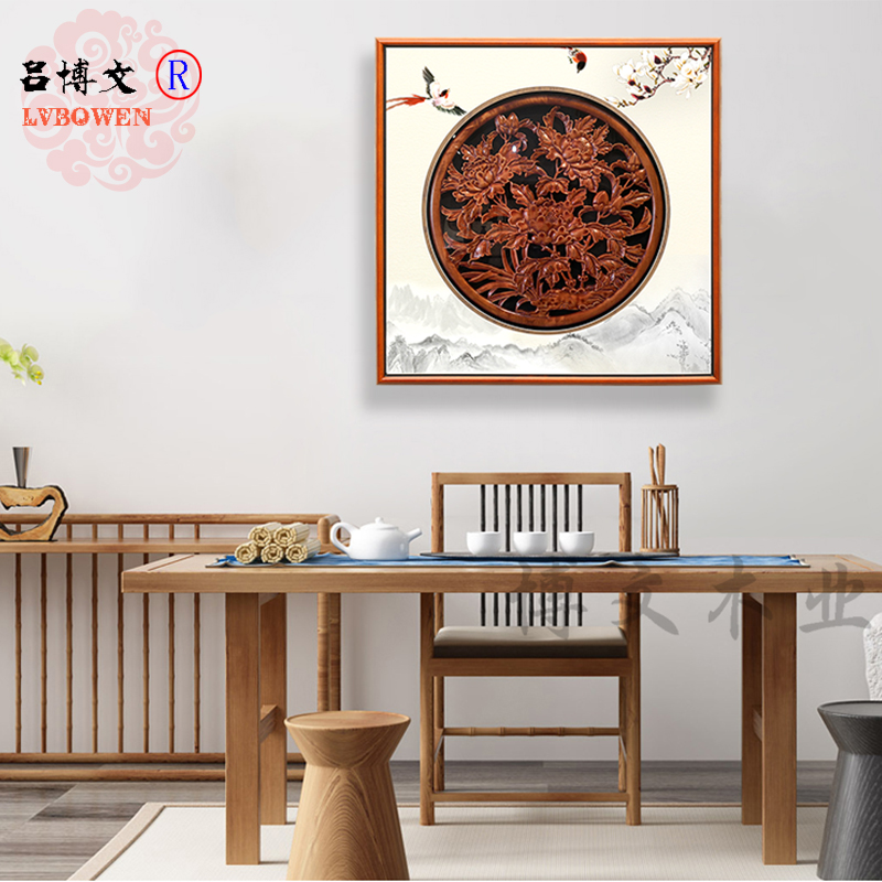 New Chinese wood carving antique pendant 80 home and fushun peony living room Guan Guan Gangway Corridor Square Decoration Painting