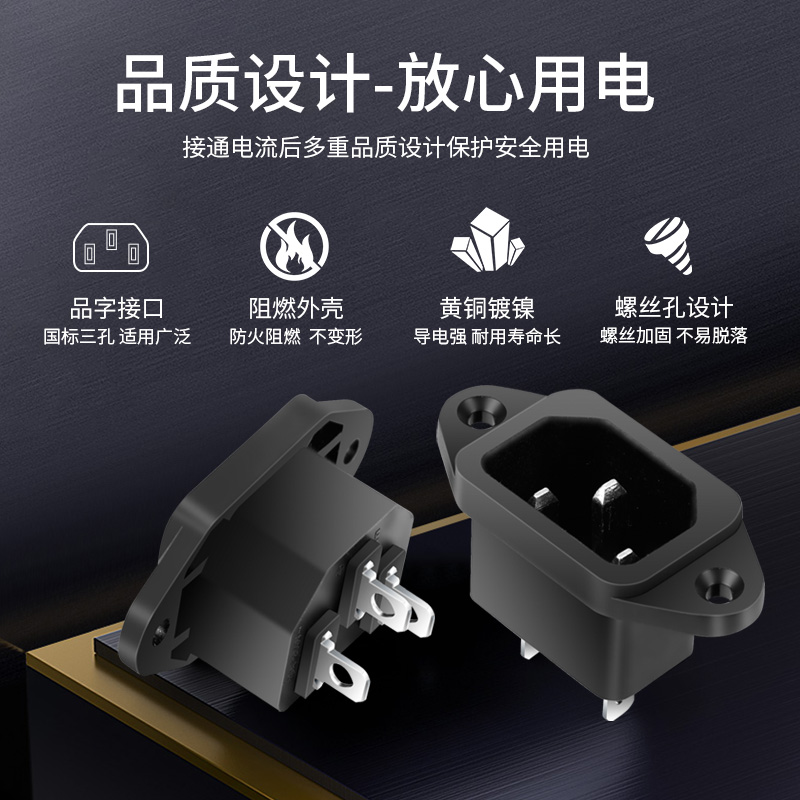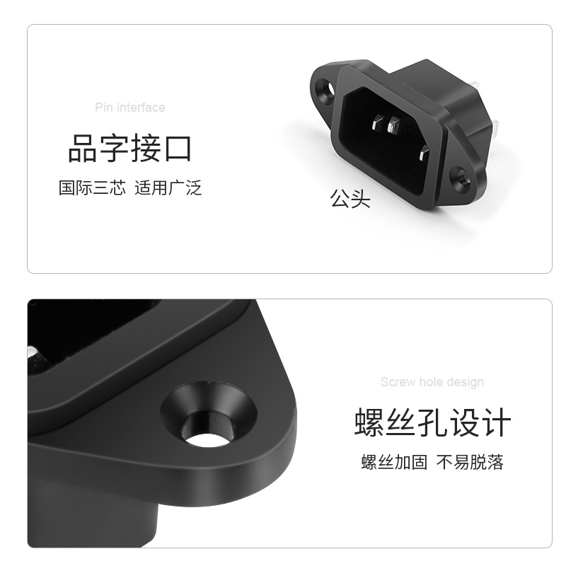 Three-core power supply plug 10A 250V pint male head screw fixed electric car electric cooker AC power socket