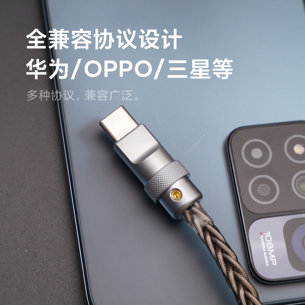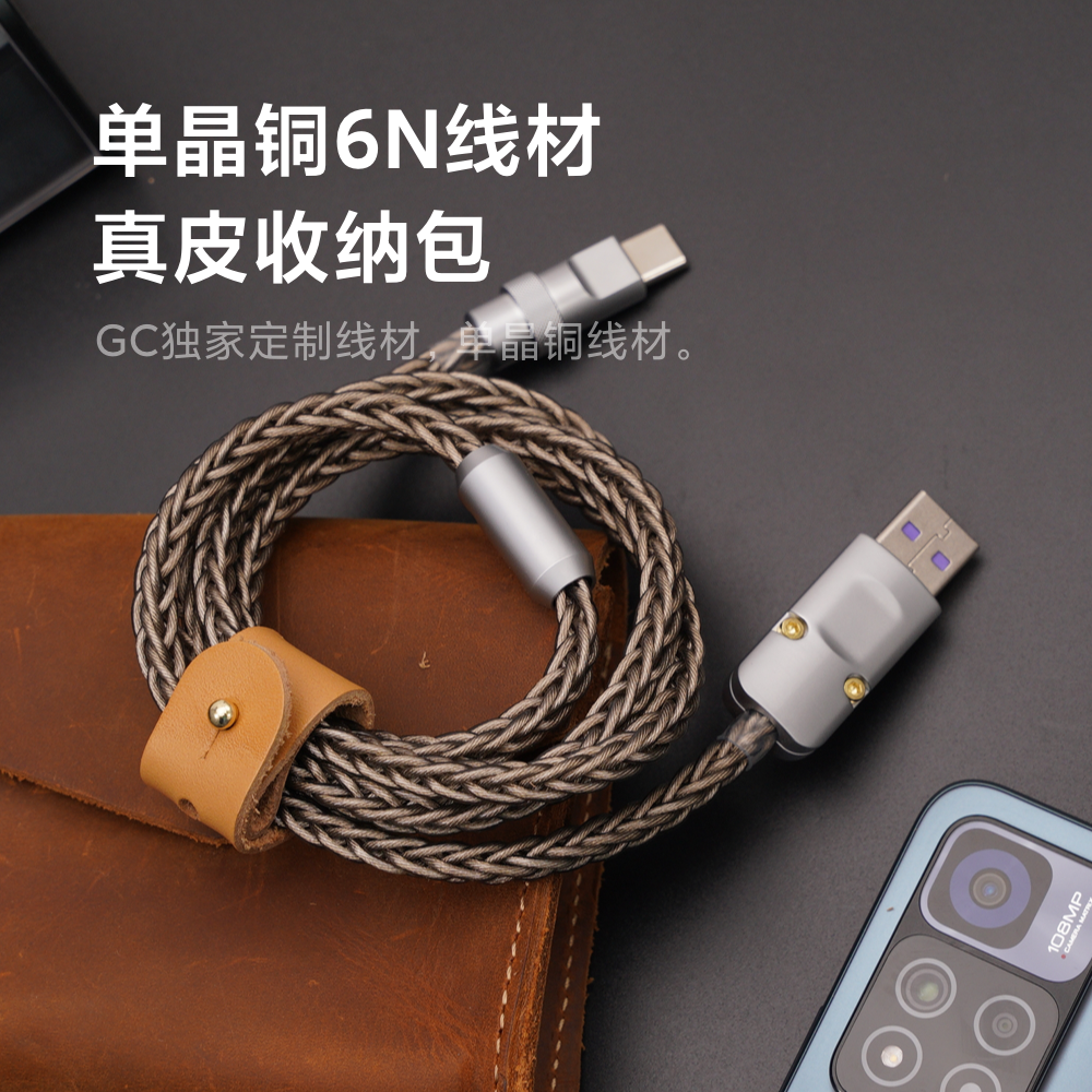 Manual 6MM coarse single crystal copper Android 5A charging data line 65W to support Huawei phone Xiaomi Type-C