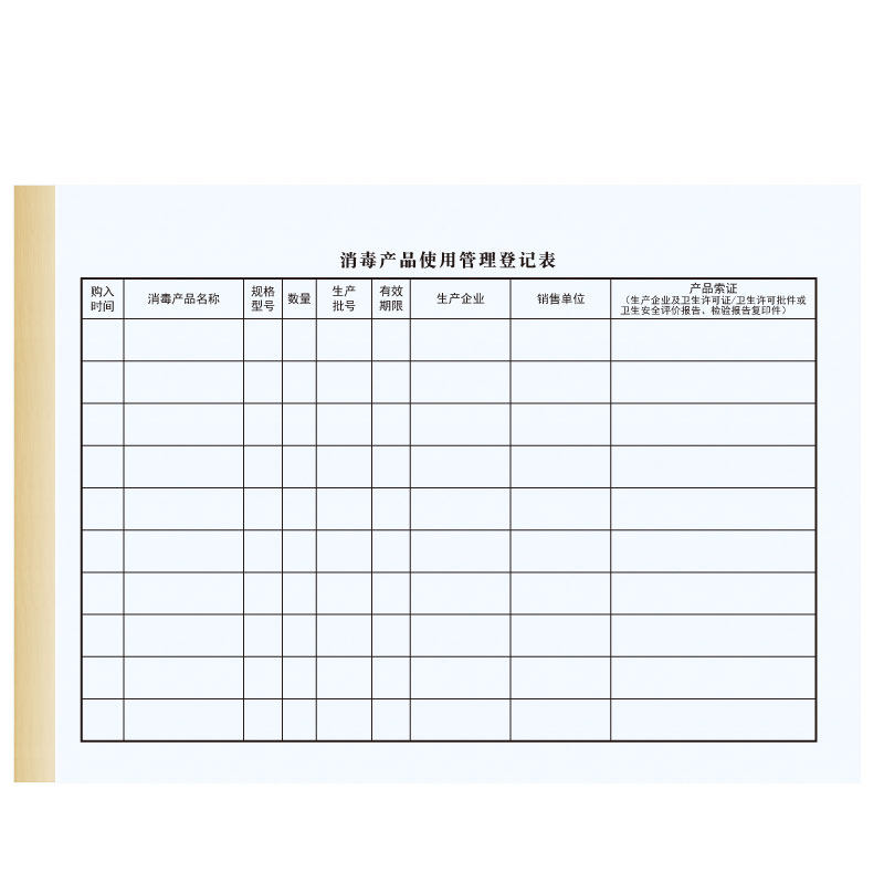 Disinfection products use management registration form medical institutions purchase acceptance ledger outpatient work log shop records