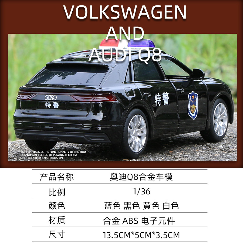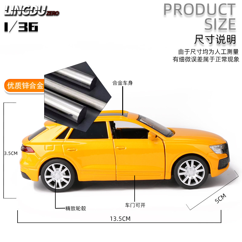 Audi Q8 alloy car model 1:36 boy metal return power toy open door emulation car model child gift