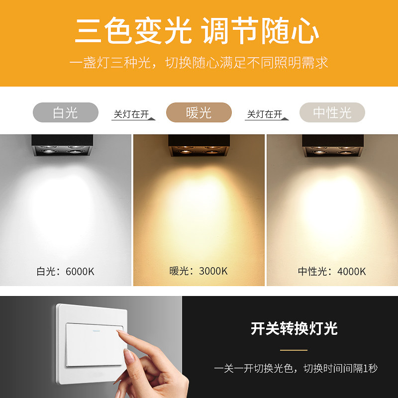 7W * Four-head white shell-three-color changing light 15W * four heads white shell-three-color light change 15W * four heads black shell-three-color light change 10W * four heads black shell-monochrome (light color please note)