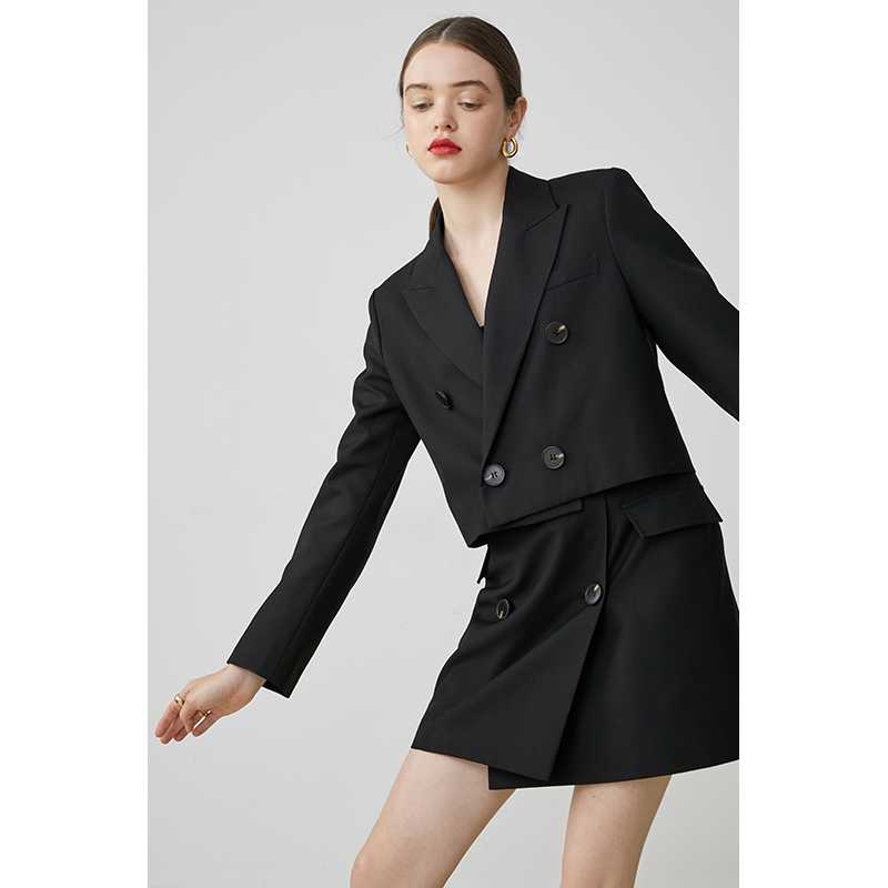 Van Loo 2022 Spring New Commuter OL Wind Black Small Suit Jacket Woman Short Skirt Short Western Suit Fashion Suit