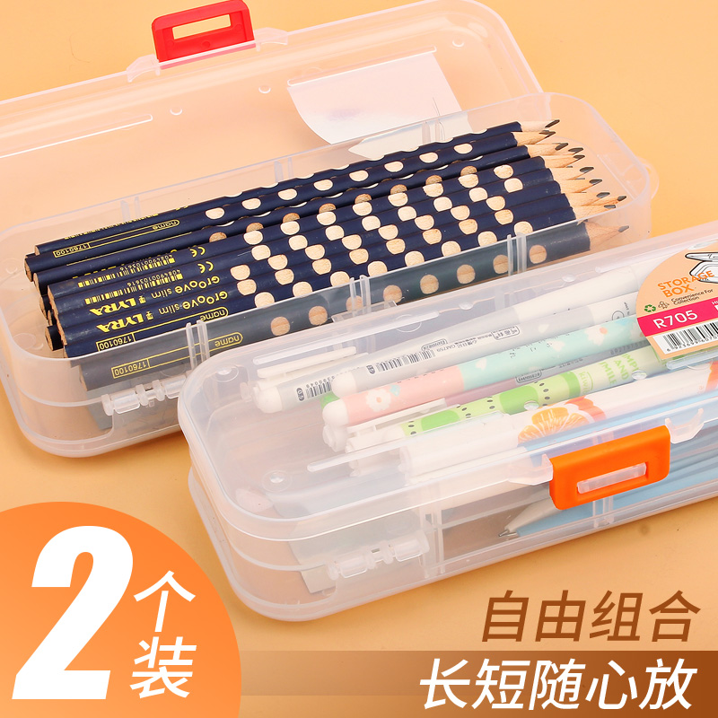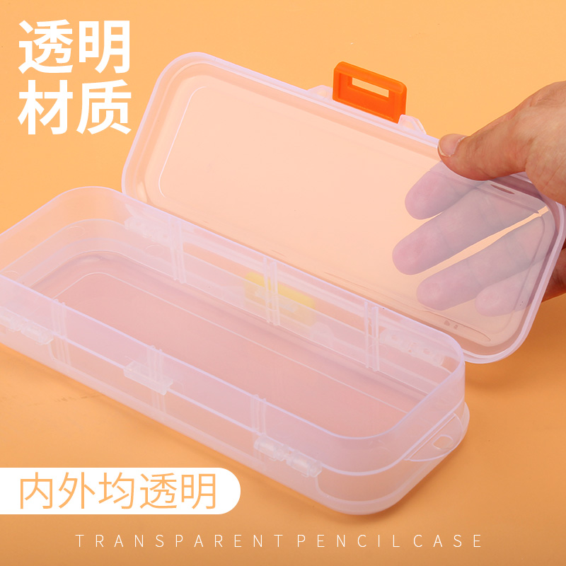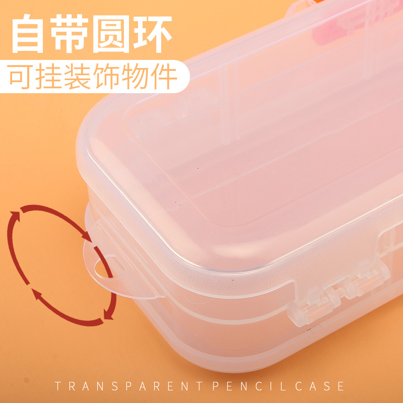 Double sided pencil case without print student pencil PP plastic transparent containing box beautifully large capacity pen case minimalist bilayer male and female fine art student big tremboynet red pencil case