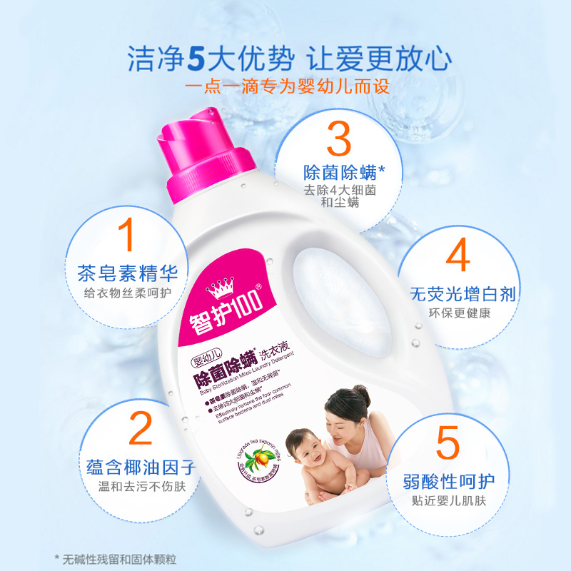 Zhihu 100 Baby Laundry Liquid for Infants 2L Clean Decontamination Free Fluorescent Agent