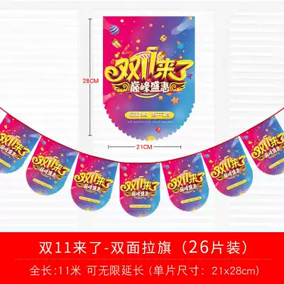 Double eleven came to pull the flag (26 sheets long 11 meters) 5 Double Eleven came to hang the flag (send 5 sets of hanging poles) (double eleven came) 5 Flags 5 sets of double eleven shopping carnival pull flag 5 double