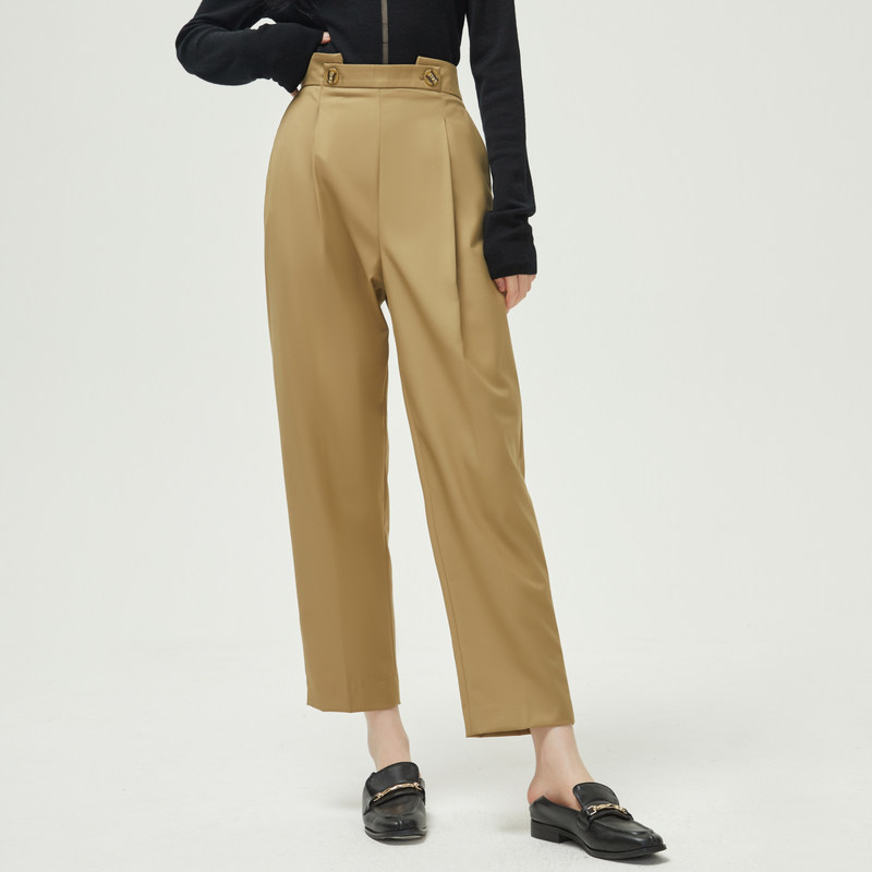 MECITY women's dress 2022 new commuter business Double button Symmetrical Design Pure Color Tapered Western Fit Pants 547791