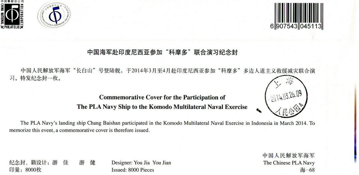 The Hai - 68 Chinese Navy went to Indonesia to participate in the commemorative seal of the Comodo joint exercise