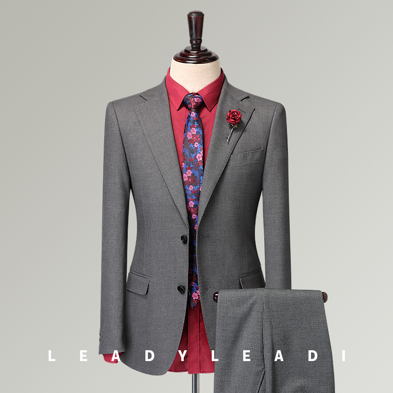 Suit men's suit Men's business formal slim suit High-grade gray casual wool fashion handsome wedding dress