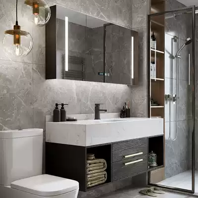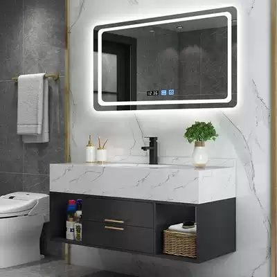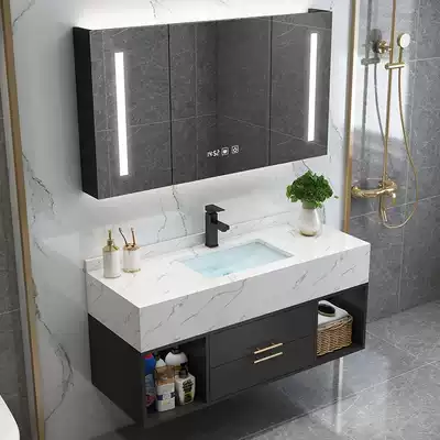 Marble smart bathroom cabinet combination light luxury Rock board wash hand wash basin modern simple dressing room wash basin
