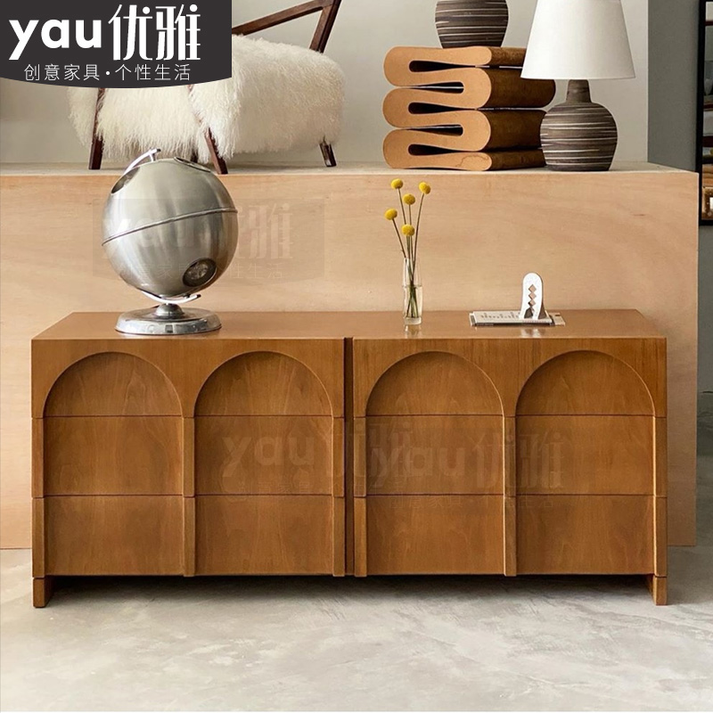 Nordic Light Luxury Medieval Style Deco Arches Solid Wood Dining Side Cabinet Hyun Guan Cabinet Decorative Cabinet minimalist modern TV cabinet