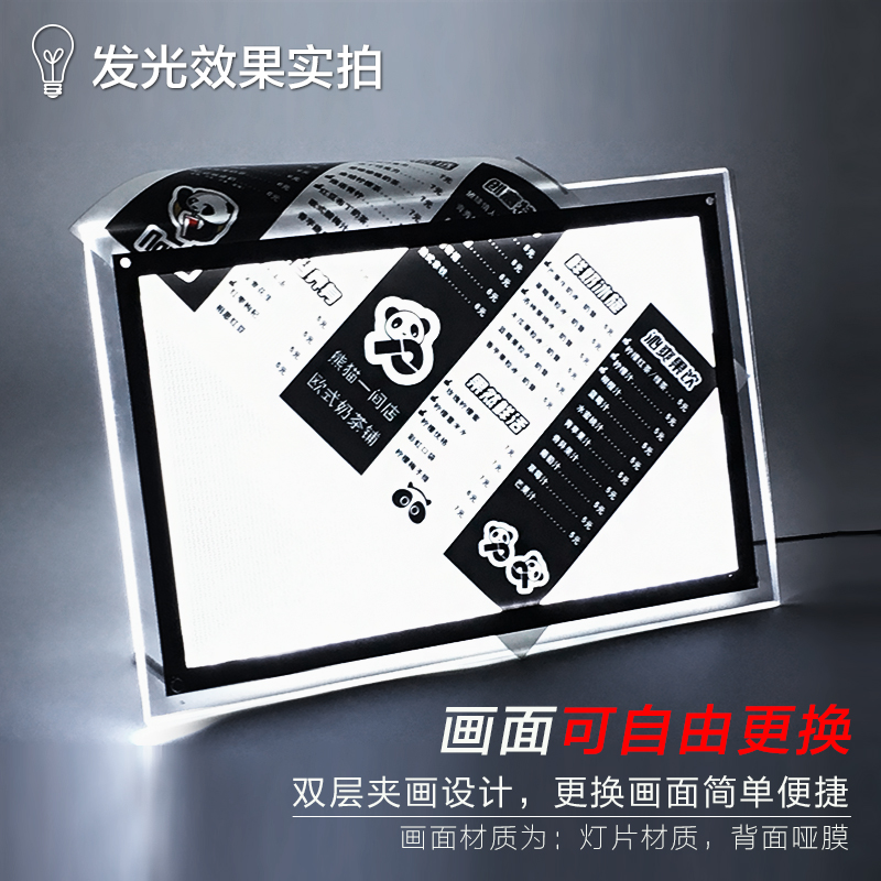 Bar order price list ultra-thin LED luminous crystal light box milk tea shop vertical display board advertising order board