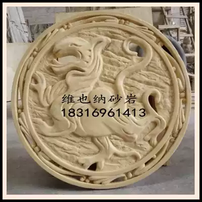 Artificial sandstone Chinese embossed glass fiber four Magic Beasts background wall porch sandstone Hotel Villa home decoration materials