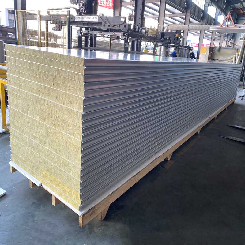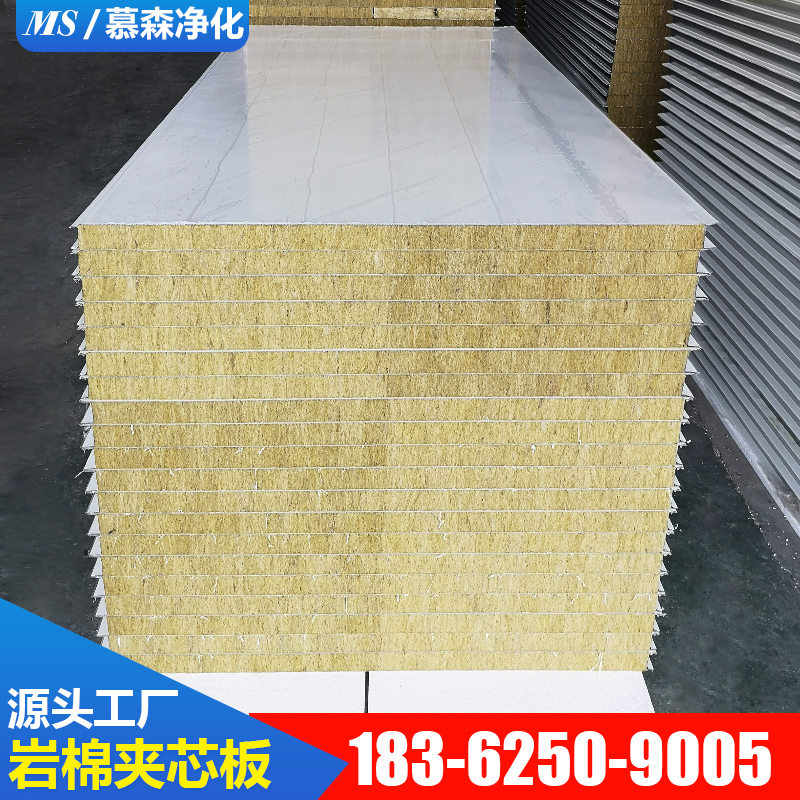 Mechanism rock wool board color steel plate fireproof 50mm insulation board square cabin sandwich board 75 100 purification board partition wall ceiling
