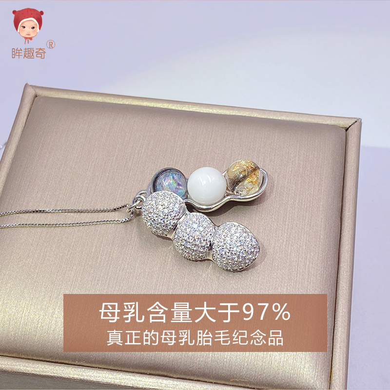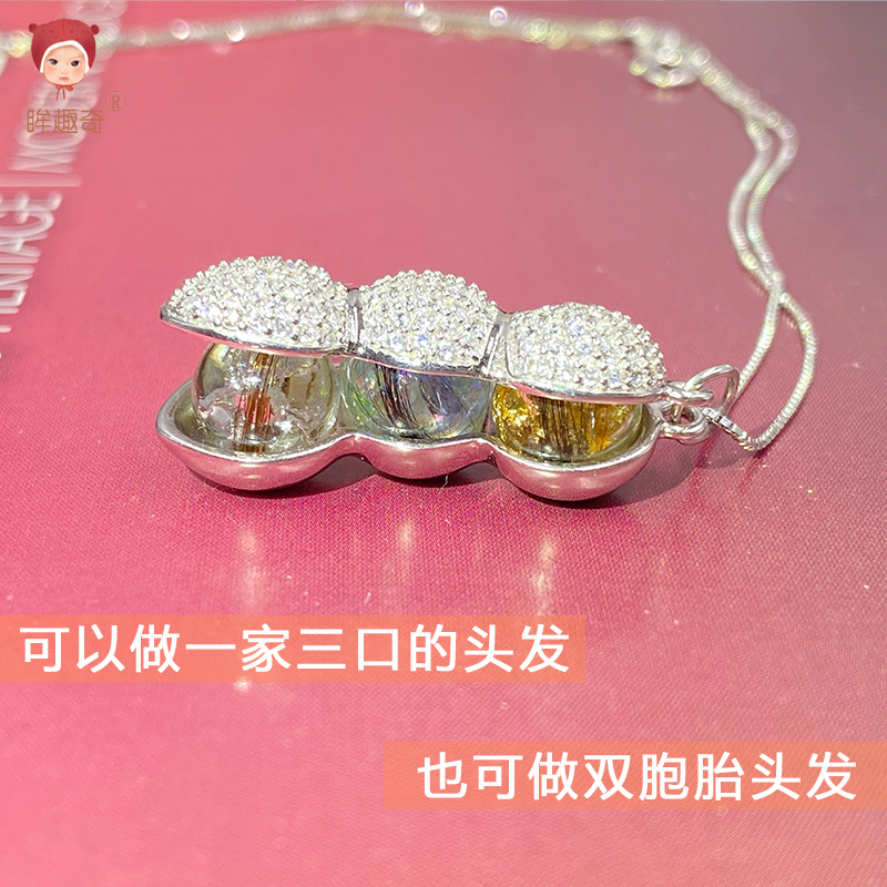 Mouqu Qi DIY) a family of three hair peanut sterling silver necklace lanugo breast milk commemorative pendant preservation collection