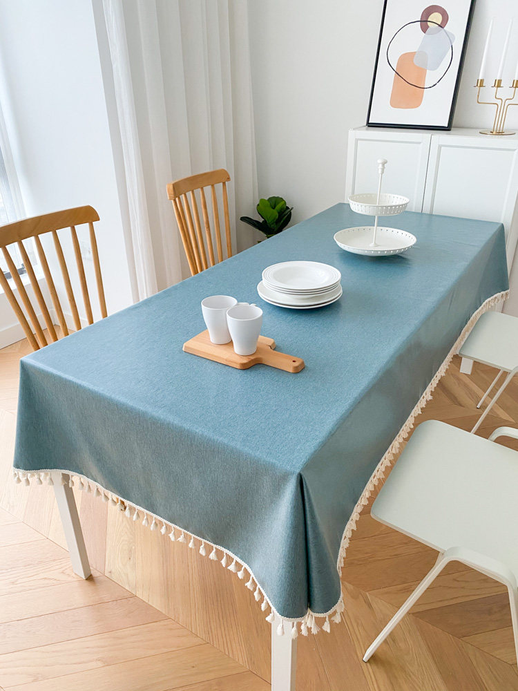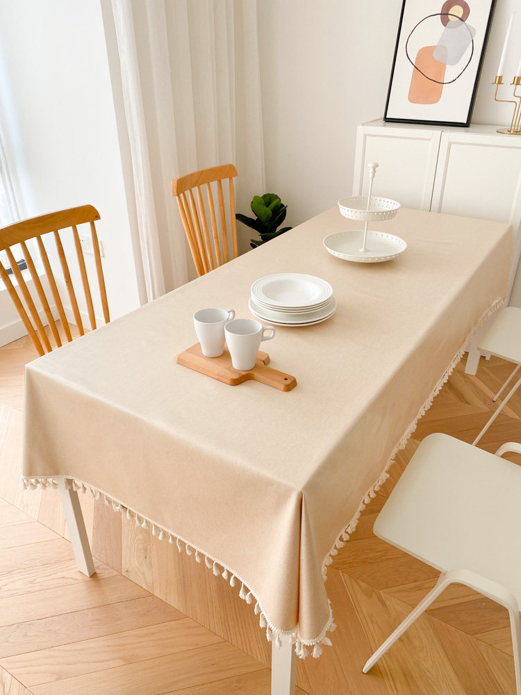 Simple modern cotton and linen waterproof and oil-proof wash-in fabric Lace tablecloth Dining table tea table square household Japanese tablecloth