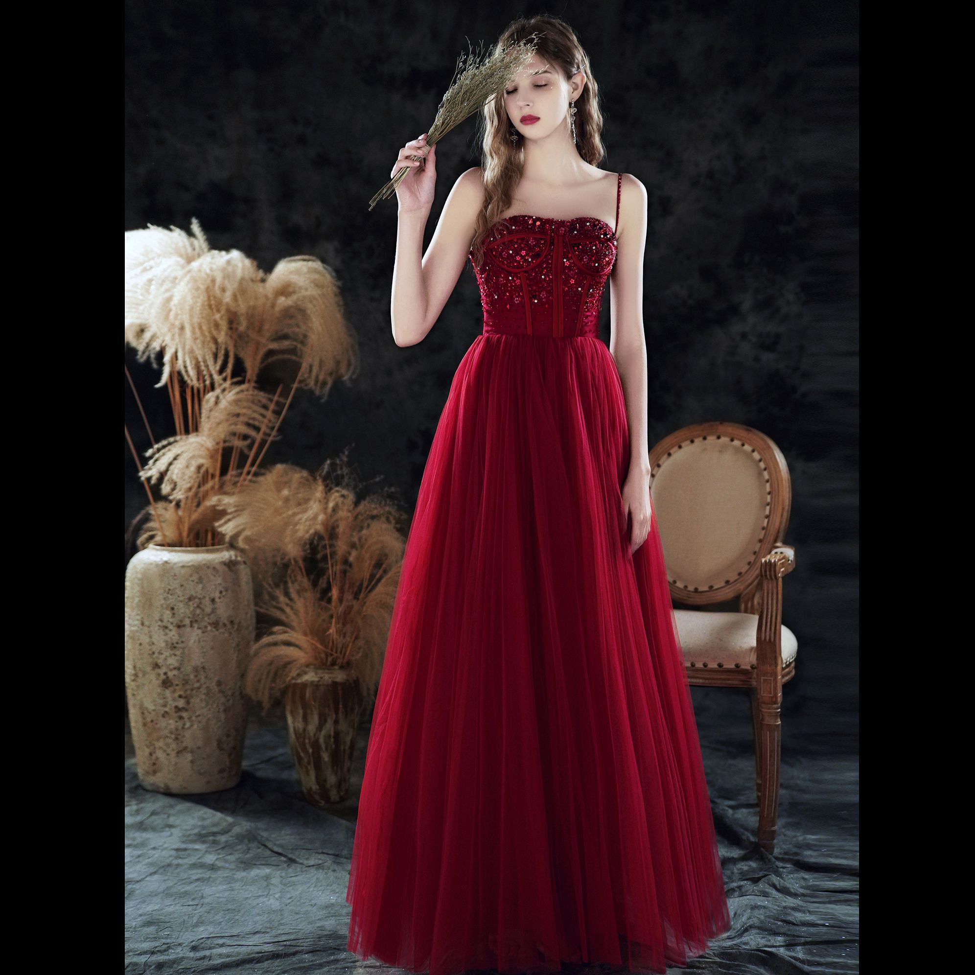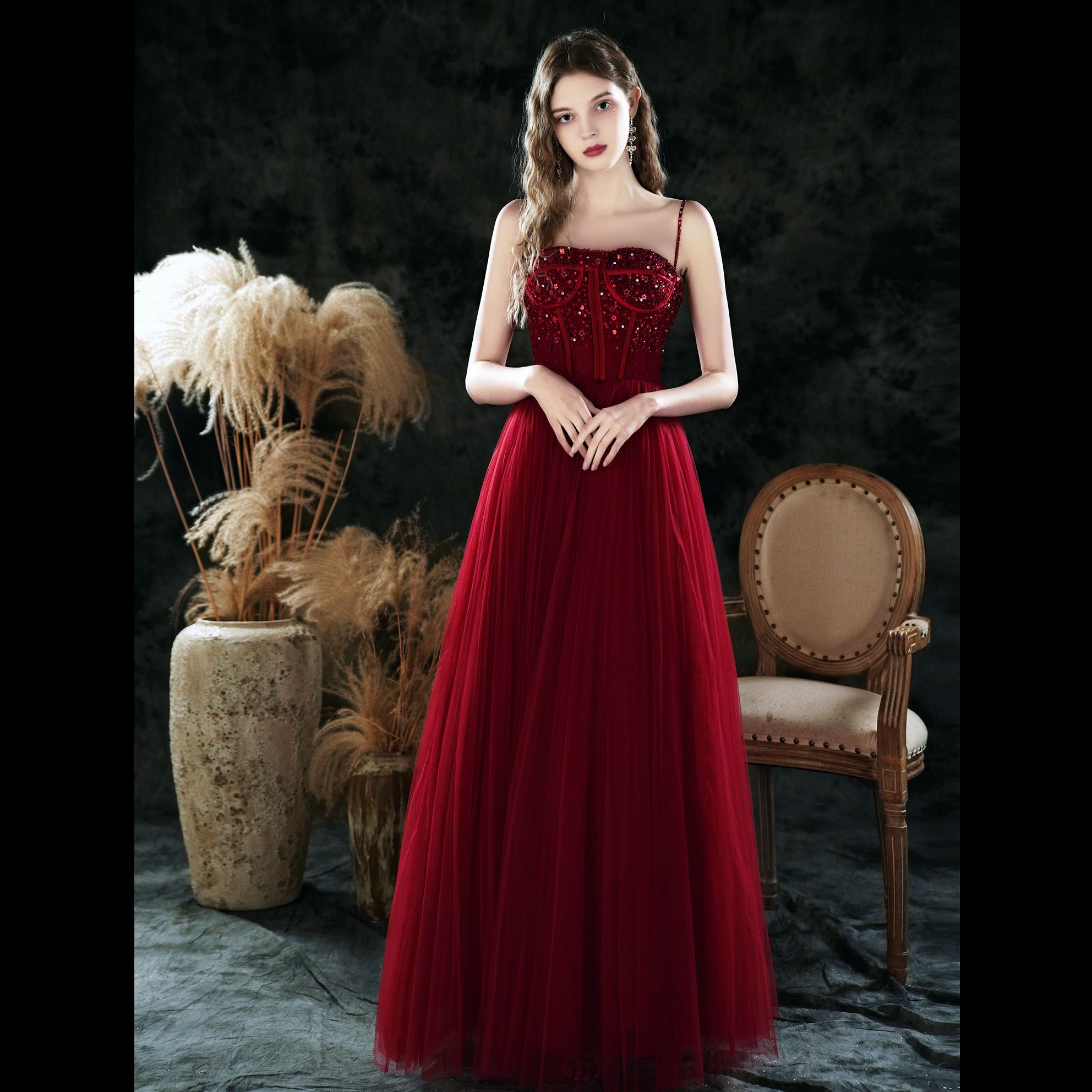 Toast clothing bride 2022 new summer dinner suspender dress host small temperament heavy industry texture light luxury - Taobao