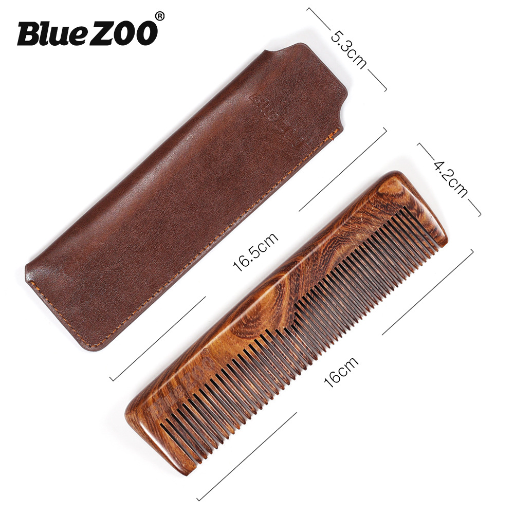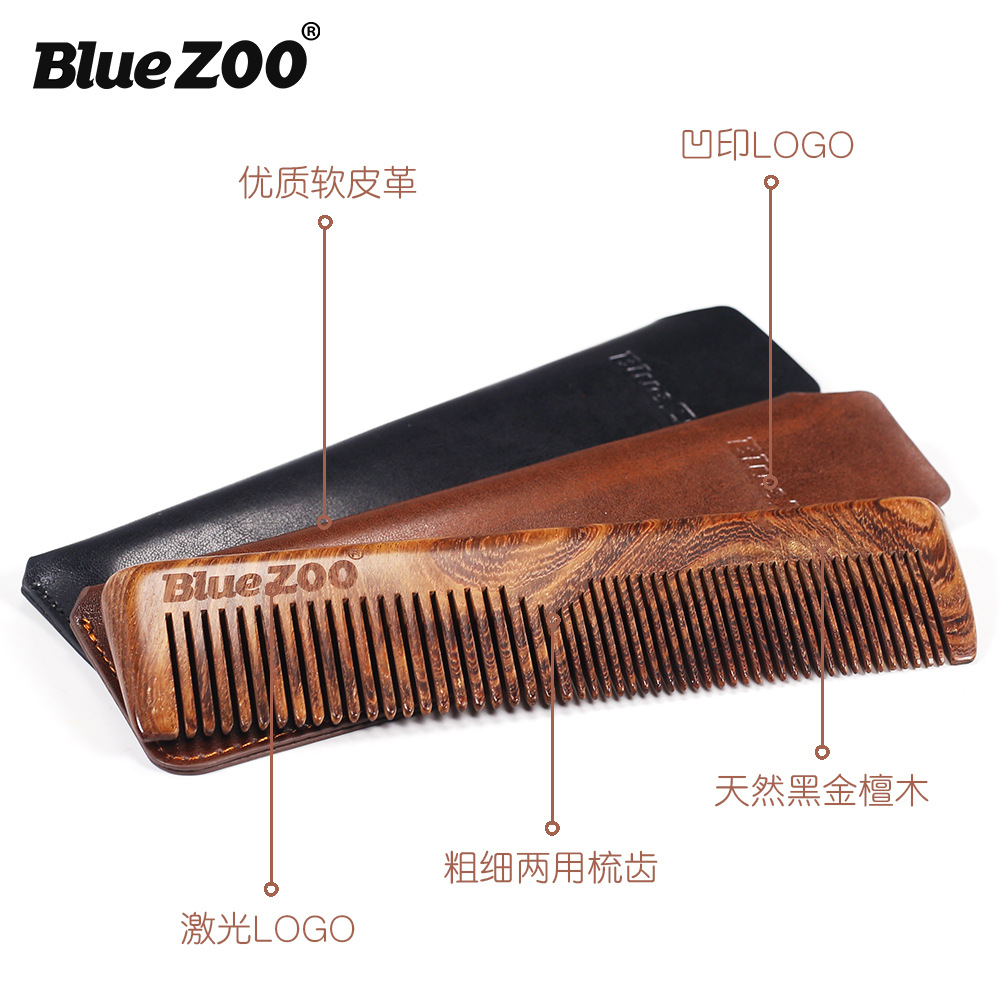 Black gold sandalwood comb Leather case thick slender comb beauty hair comb beard comb man's beard care