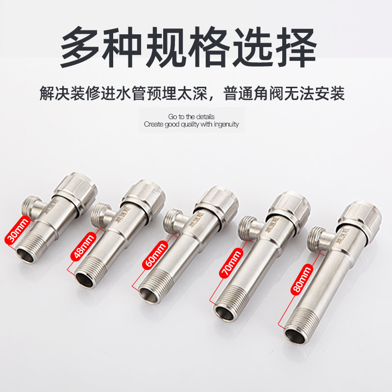 304 stainless steel extended angle valve into the wall extended 4-point triangular valve cold water heater switch stop valve toilet