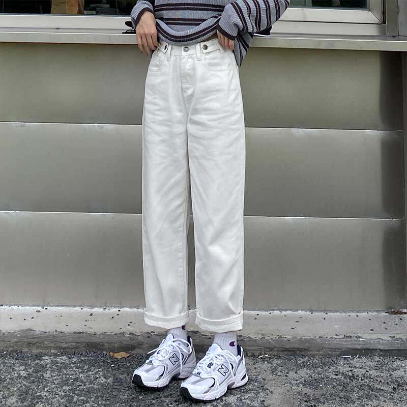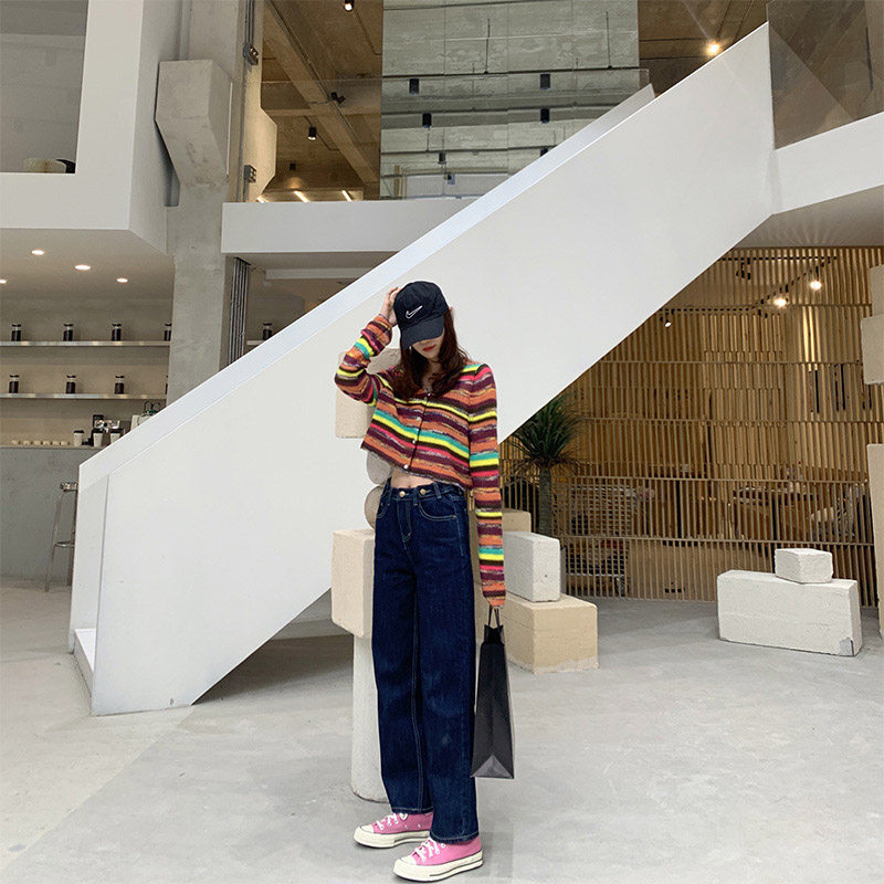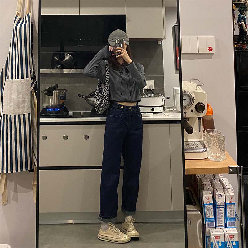 Seven4lee dark blue jeans women's straight loose new retro high-waisted trousers show thin wide-leg pants
