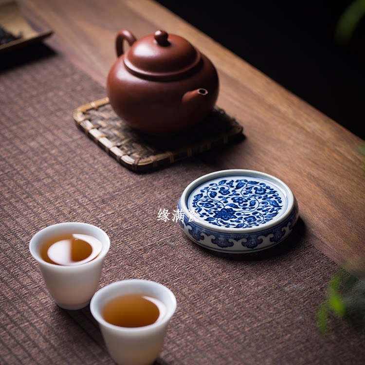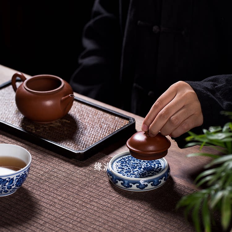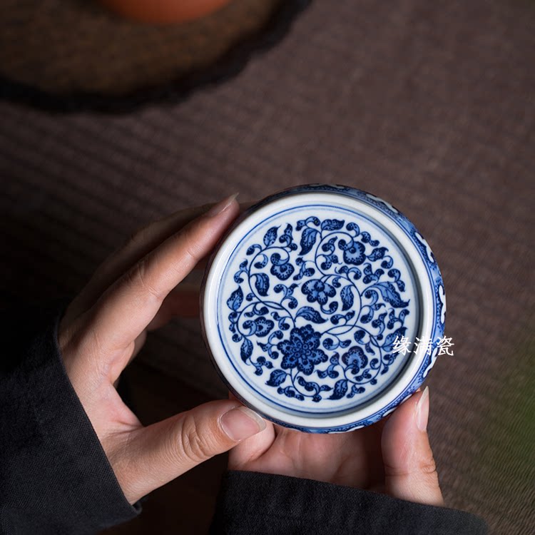 Jingdei Town full of ceramic kung fu tea ceramic tea ceramic accessories hand-drawn blue flowers with lily wrapped lip cover