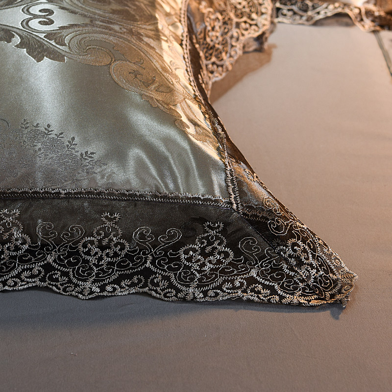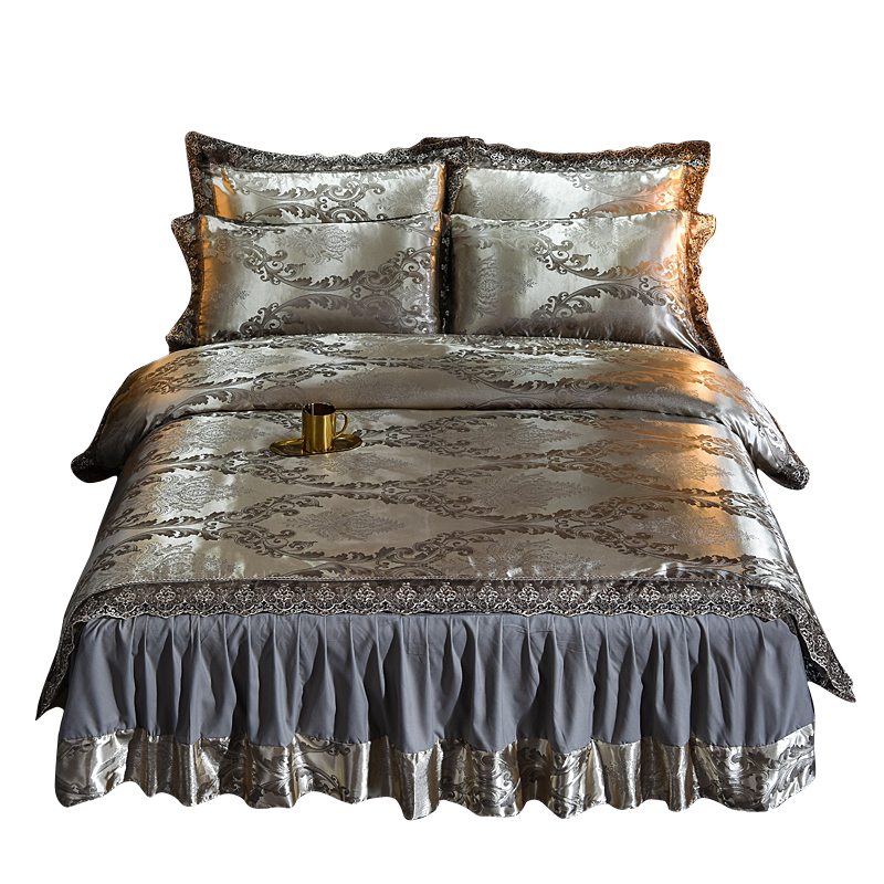 European bed skirt Satin four-piece bed pack Jacquard duvet cover Cotton pure cotton naked sleeping single double bed cover Silk bedding