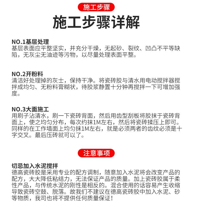 Chengdu Degao large brick tile adhesive TTBII type (suitable for wall tiles below 400*800)