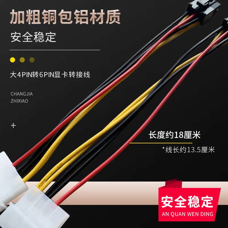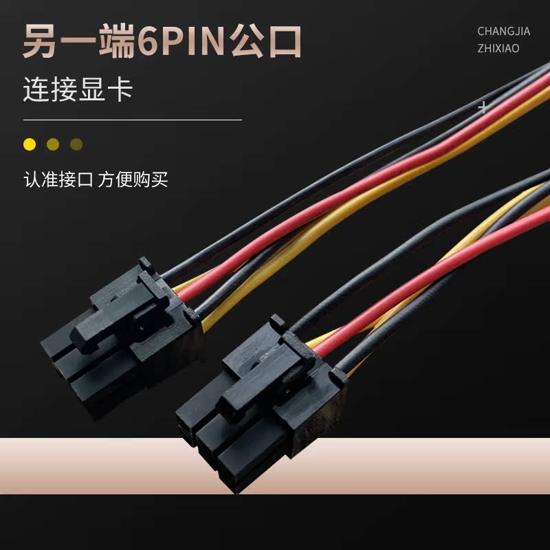 Large 4pin turn 6pin power cord single D turn graphics card 6P wire graphics card power supply line power cord full 26