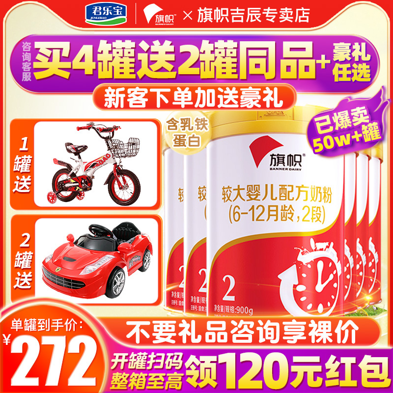 Jun Lebao Red Flag Milk Powder 2 Segments Infant Formula Milk Powder Red Pot Two-stage 900g * 4 Tanks Official Flagship