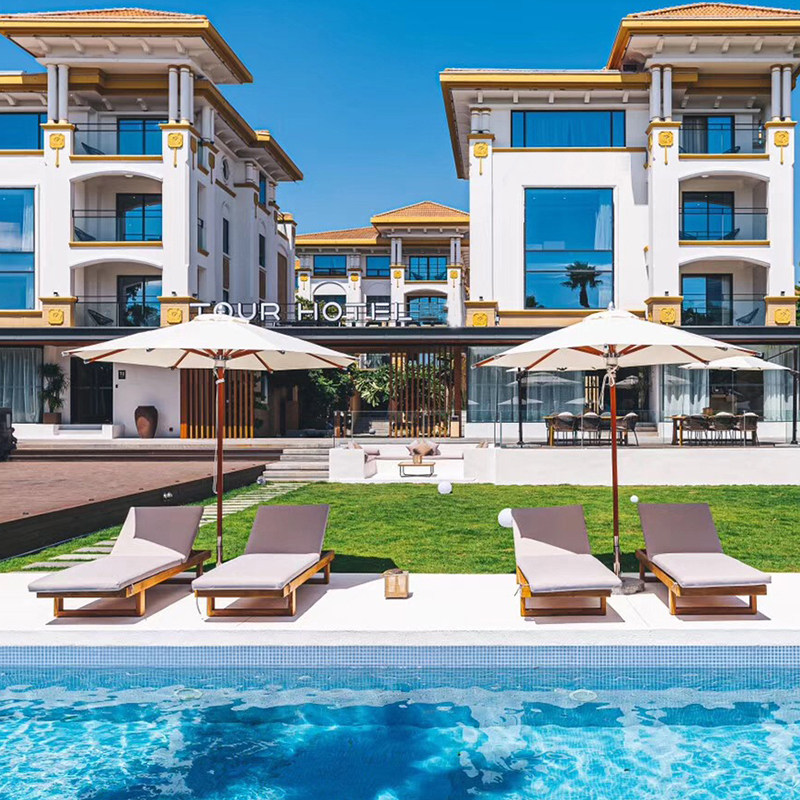 Outdoor deck bed teak patio patio garden villa swimming pool hotel beach chair solid wood outdoor sun protection lounge chair