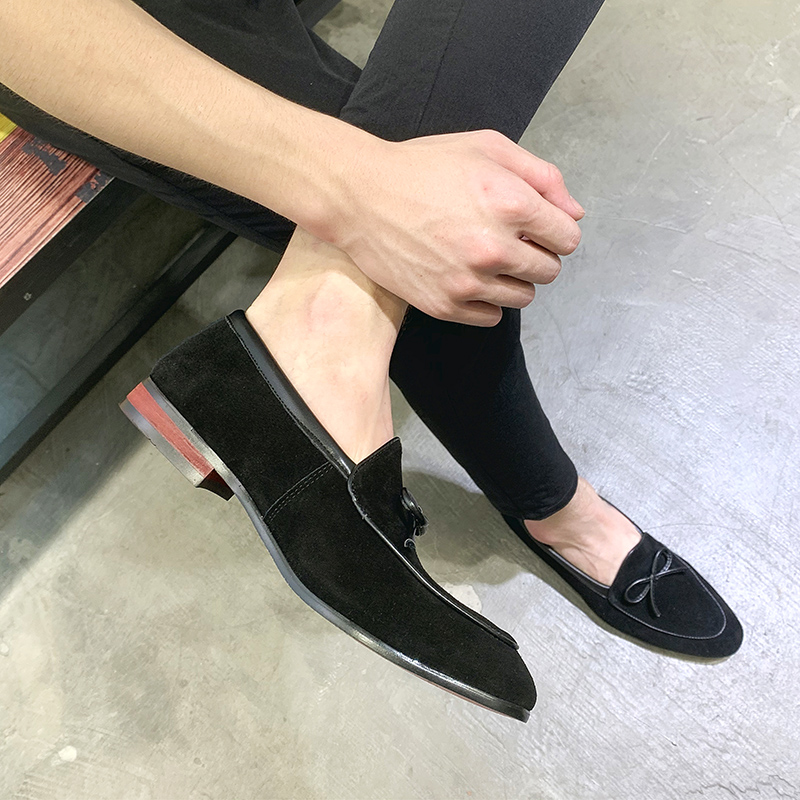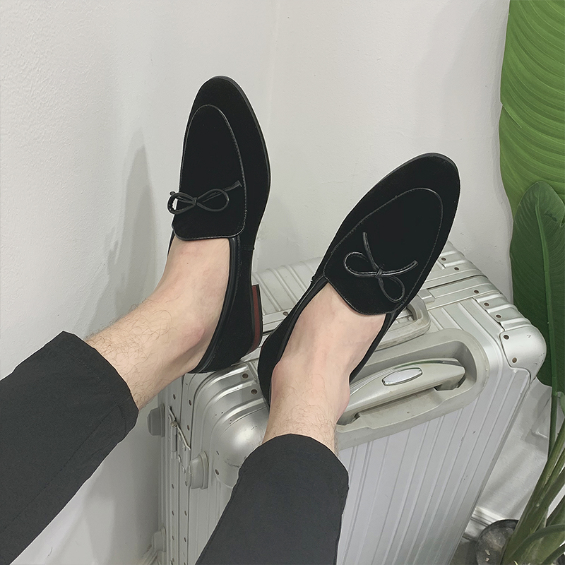 Genuine Leather Casual Lefu Shoes Sloth Man A foot Pedal Bean shoes Men's Inn Pointed Streaming Su Han Edition Trend Little Leather Shoes Man