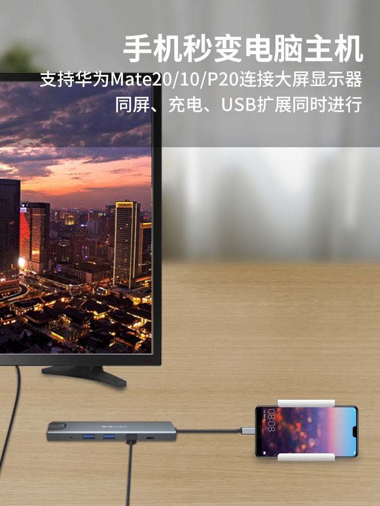 Acasis Type-C expansion dock to HDMI to VGA adapter network cable converter splitter Apple is suitable for Huawei computer projection screen to C port usb3 0 Gigabit network