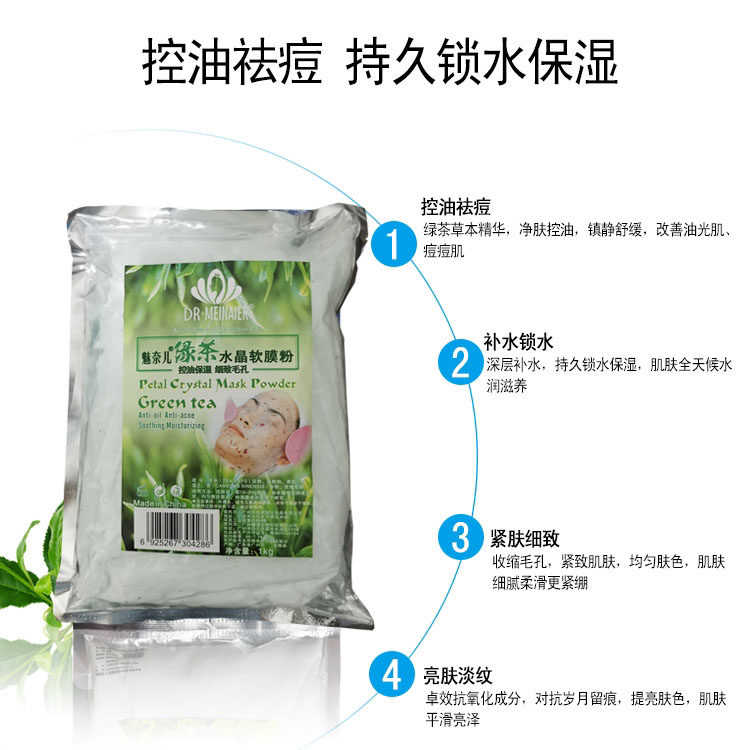 Beauty Salon Special Green Tea Crystal Soft Film Powder 1000g Water Tonic Moisturizing Control Oil Acne Shrink Pores Mask Powder-Taobao