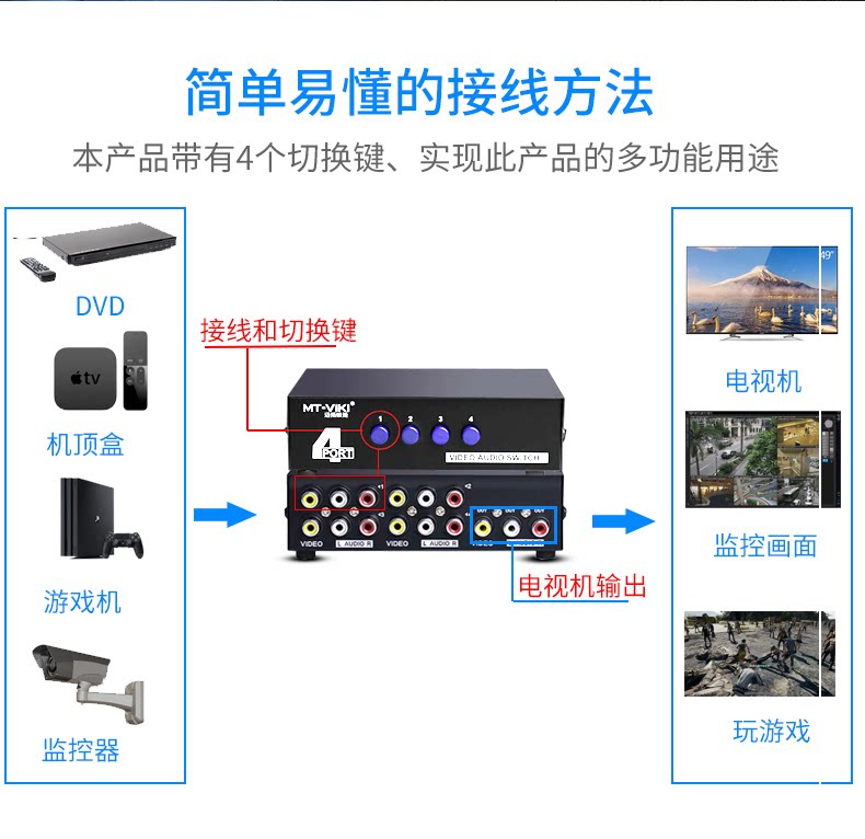 AV switcher Four-in-out audio-video converter 3rca tricolour switching TV Audio film distributor