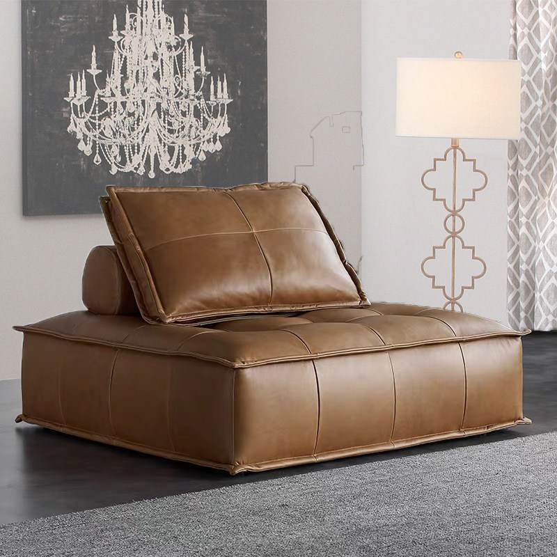Italian-style minimalist real leather sofa light extravagant single block industrial wind Italy modern minimalist Personality Creative Sofa