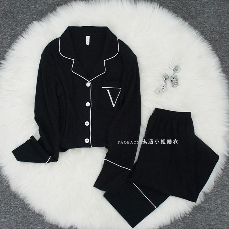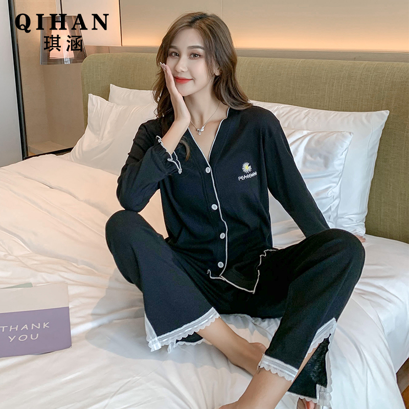 Black daisy pajamas women's spring and autumn cotton long-sleeved students can wear net red explosion version ins home service suit
