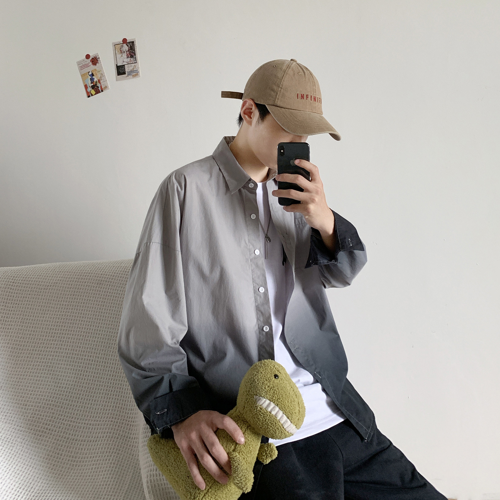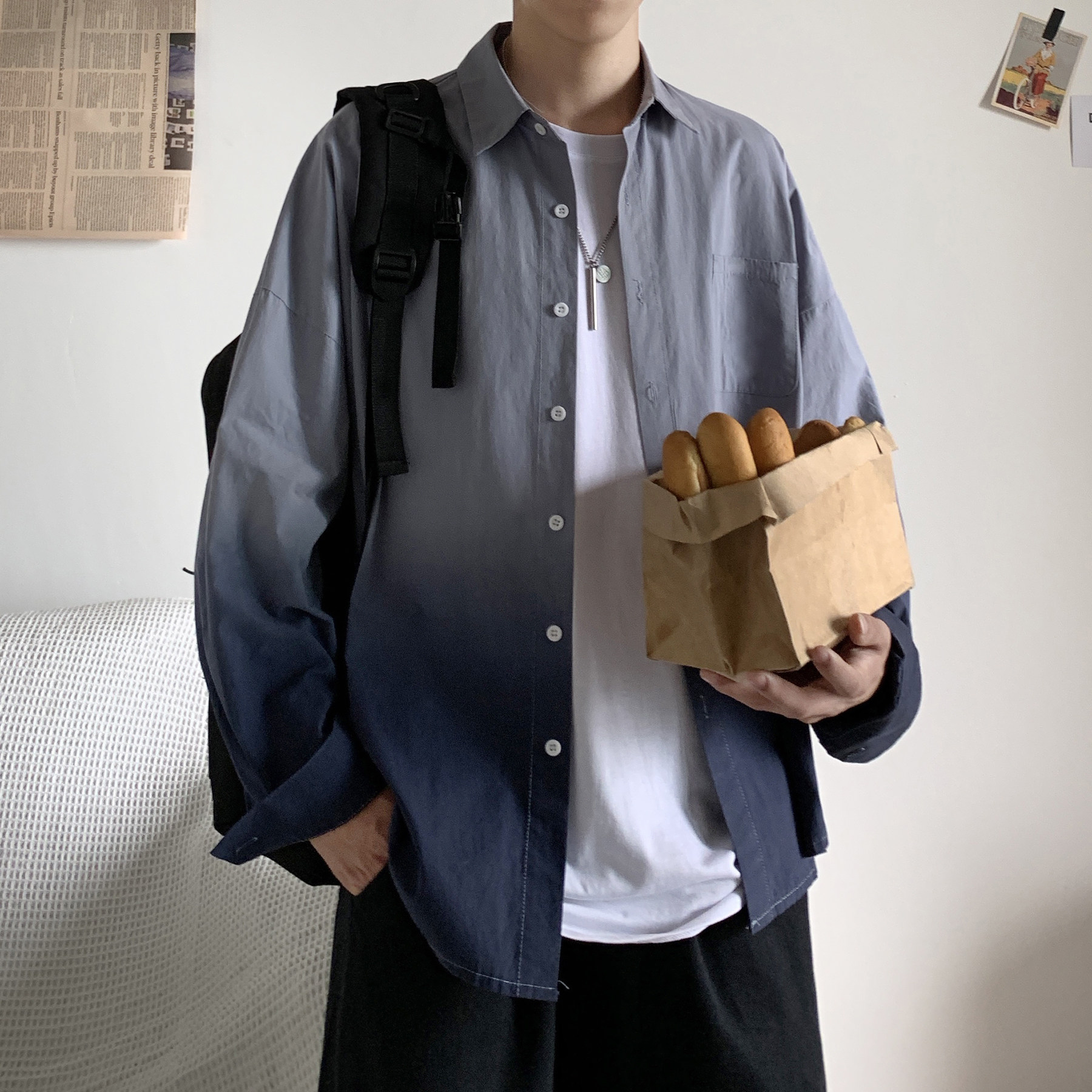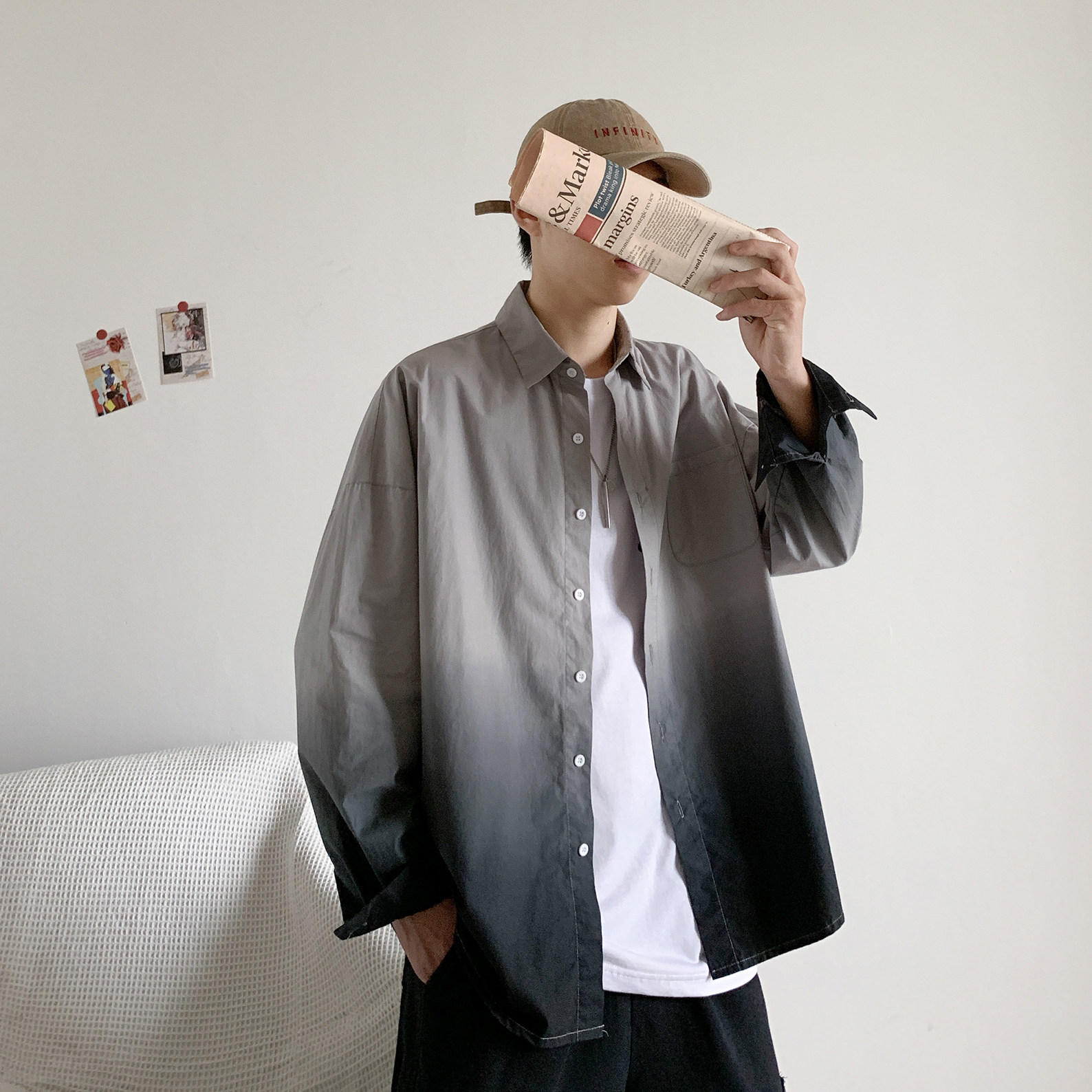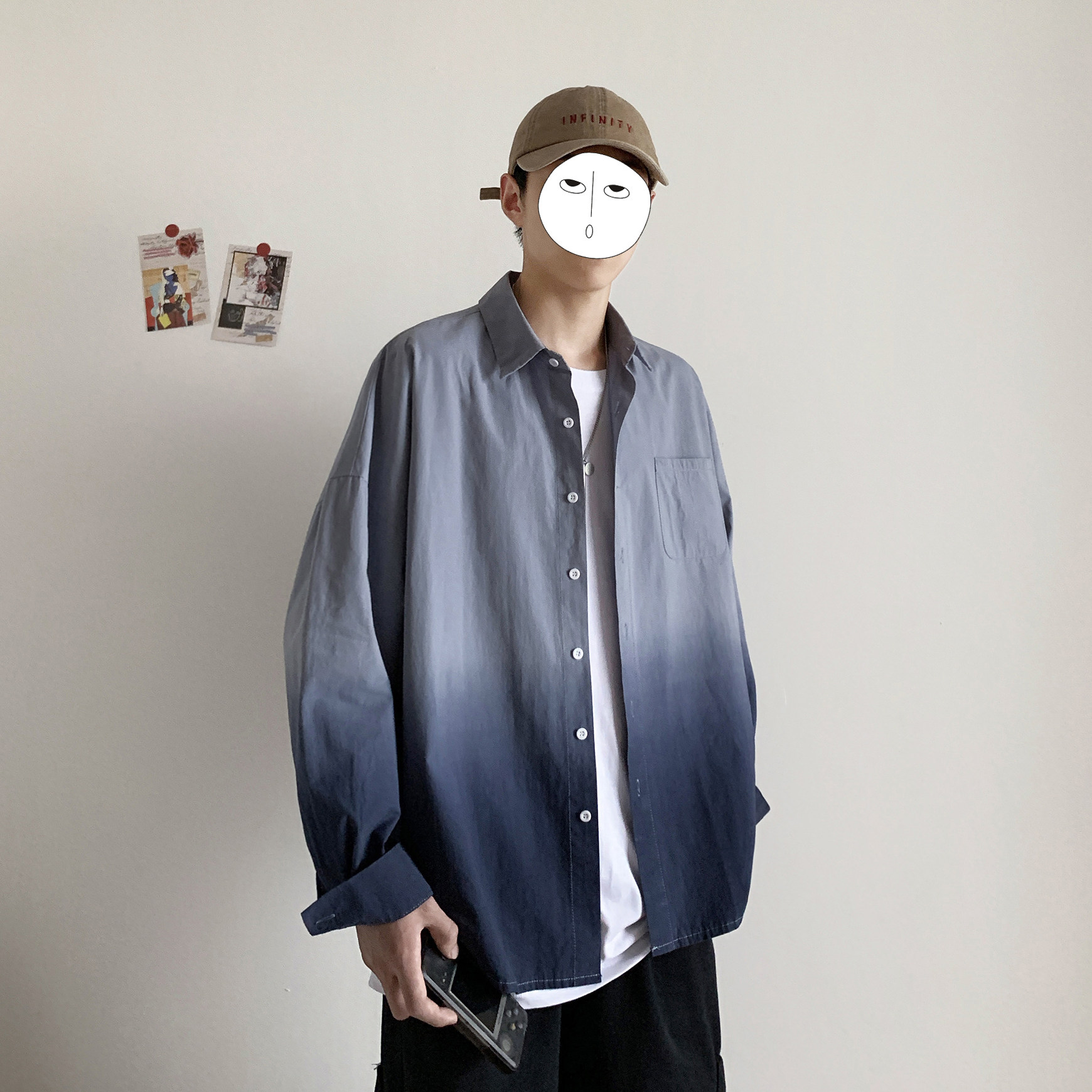 Gradient color cotton drop sense shirt men's Korean version of the trend long-sleeved thin section Ruffian handsome Port wind Japanese loose sunscreen coat