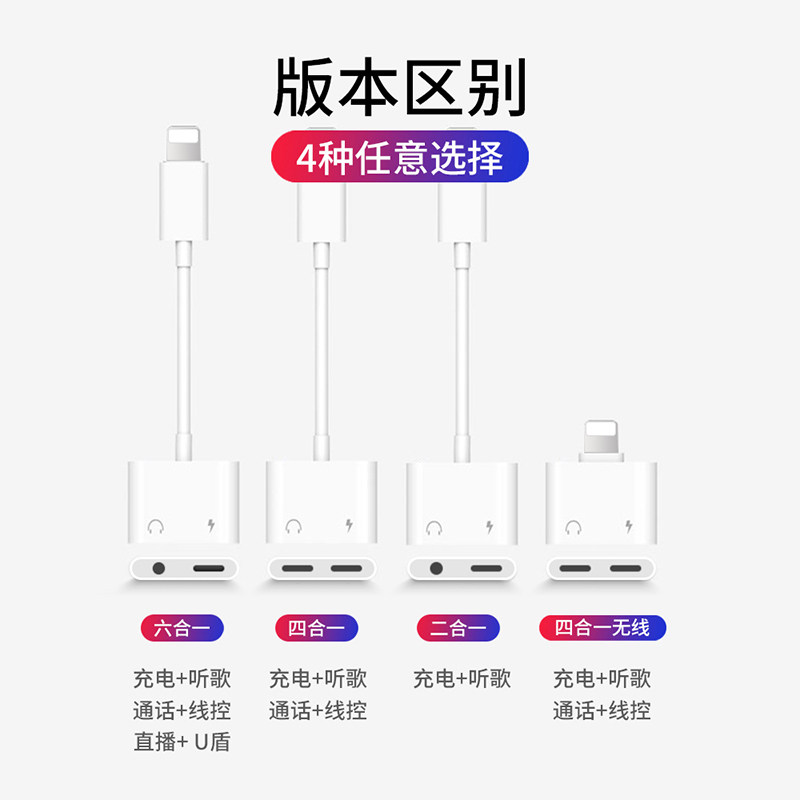 Double lightning interface (charging listen to songs line control call) 4 in 1 Apple to lightning charging) lightning headphones connected