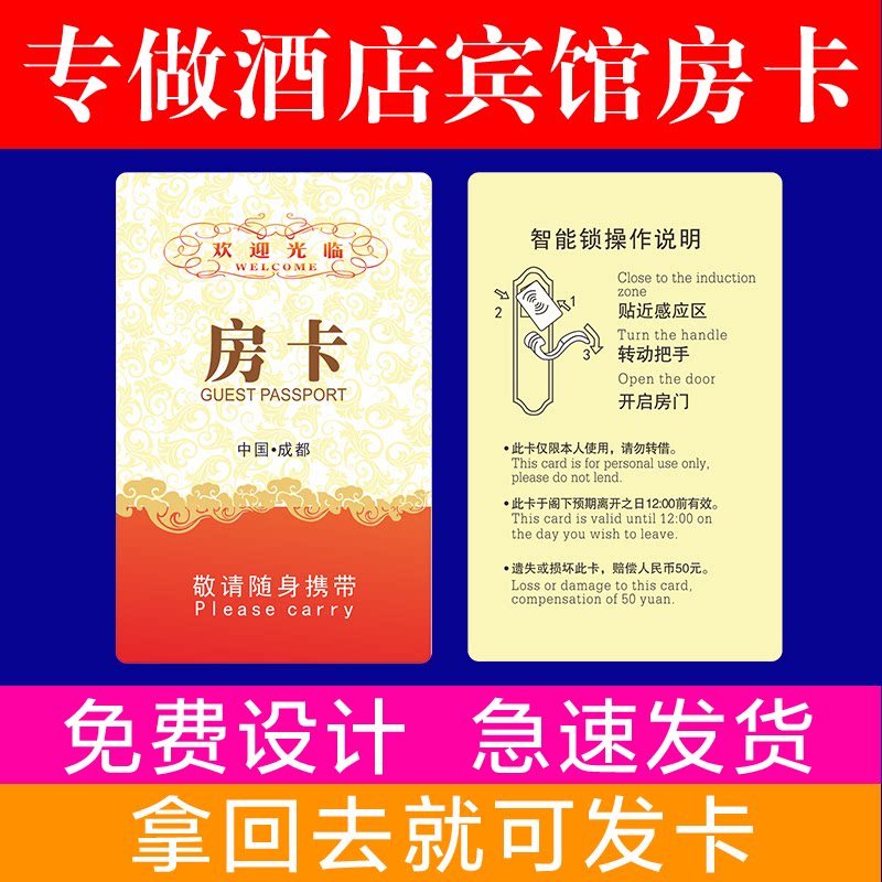 Hotel Room Card Custom Guesthouses Induction Access Control Smart Cards Fetch electric set making star Inn stack apartments Low high-frequency door lock printing Universal copy Seven days like Home Hanting City convenient-Taobao