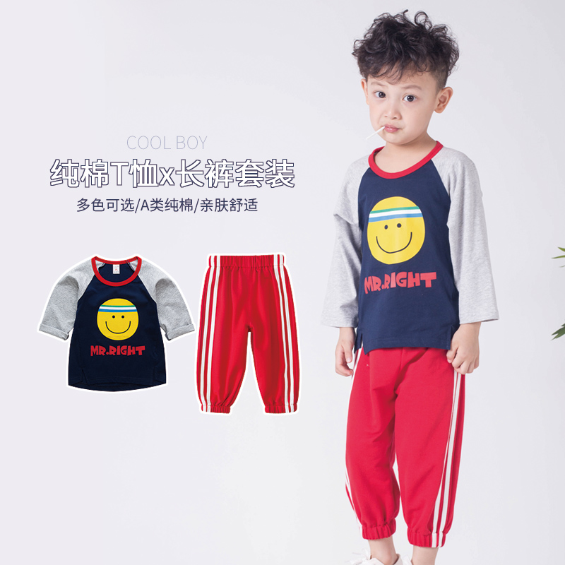 Baby boy cotton casual top suit 2022 new western style spring and autumn clothes boys middle and small children children's two-piece trend