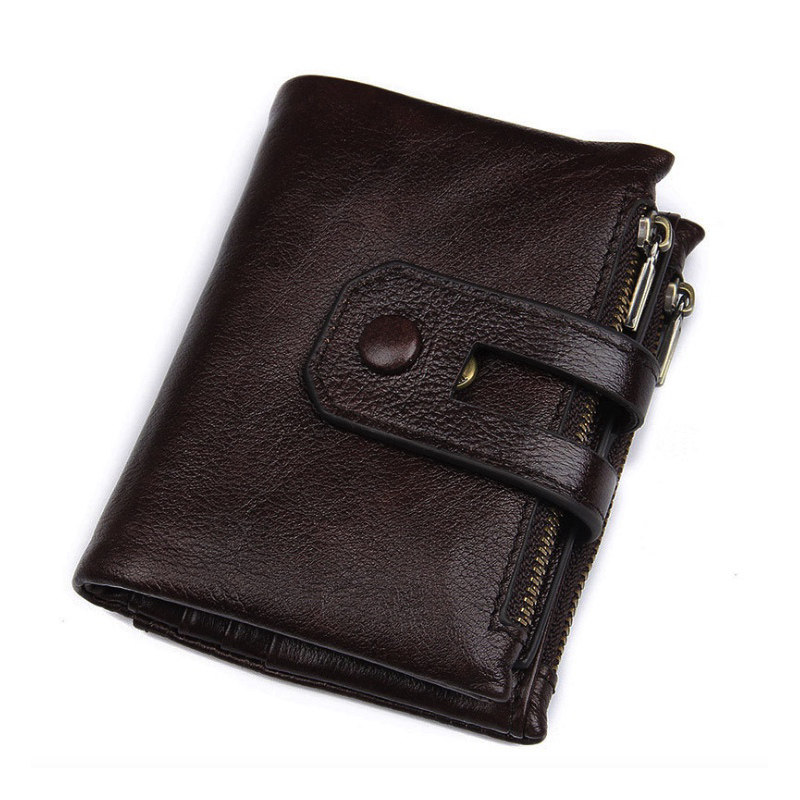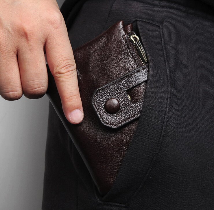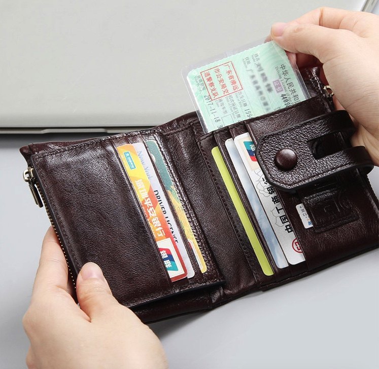 Handmade Soft Bull Leather Short Clip Men 2022 New Genuine Leather Retro Buckle Money Clip 15 Screens Upscale Pull Chain