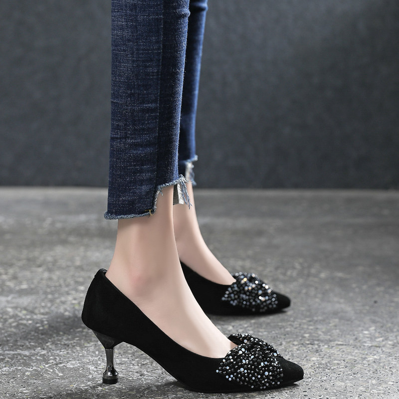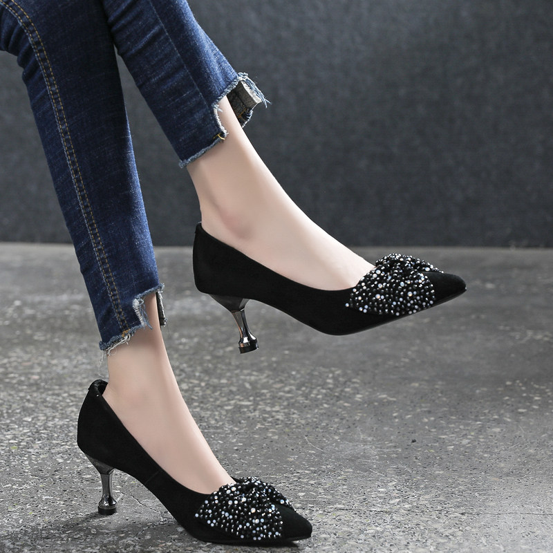 In the spring of 2023, new heels of high heels female shallow leather heels working shoes in spring heels