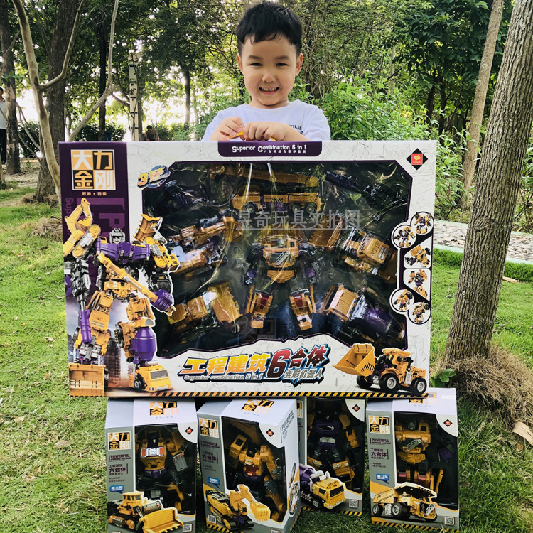 Manual deformation engineering vehicle toy 6 in 1 robot children King Kong puzzle gift digging crane mixing fit - Taobao